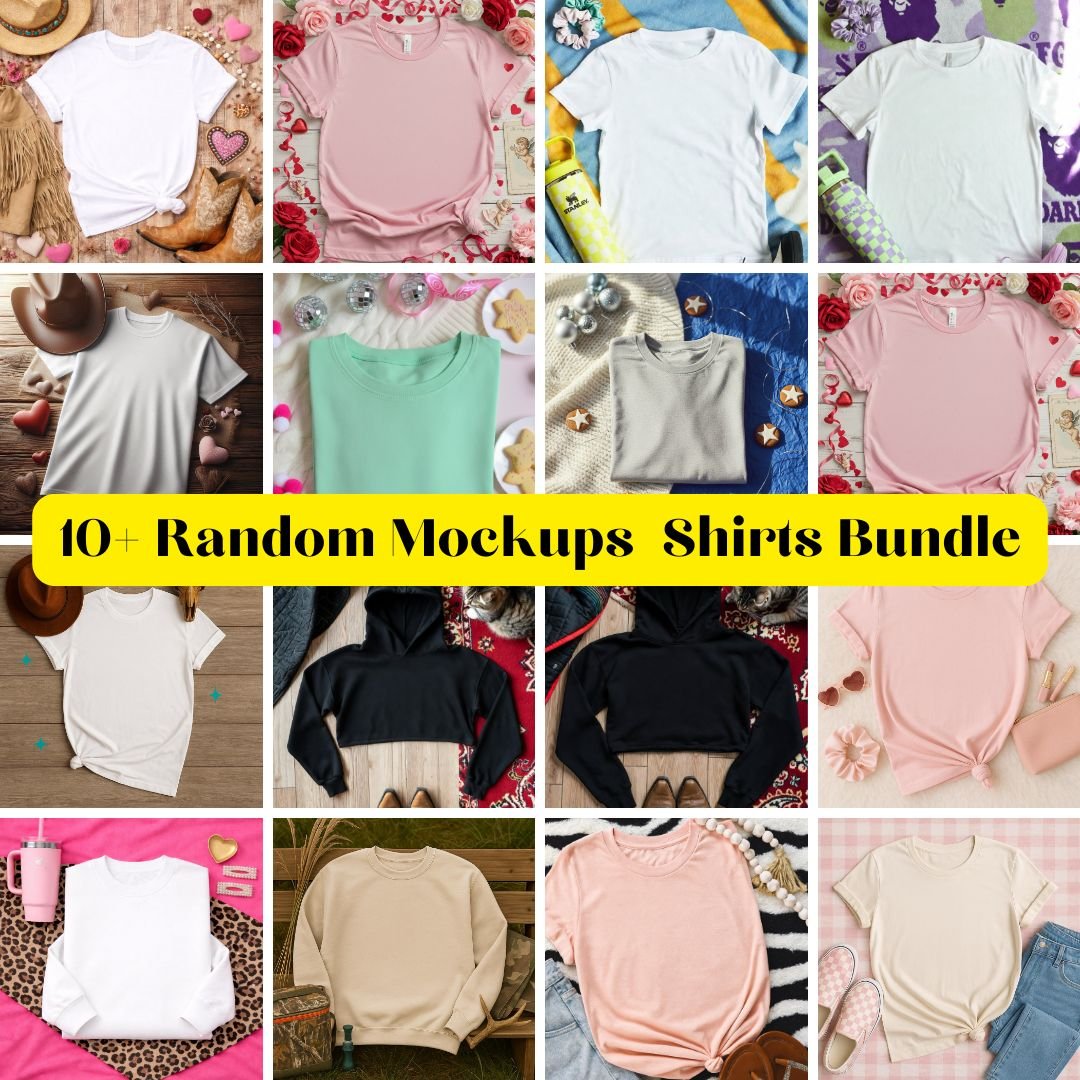 Showcase your designs in style with this vibrant 10+ Random Shirt Mockups Bundle 🌟 Perfect for creators who crave variety, this bundle features over 16 unique shirt mockups in a mix of colors, settings, and seasonal vibes. From cozy knotted tees to flat lays with props like hats, shoes, and festive decor, each mockup is crafted to help your designs pop across platforms.