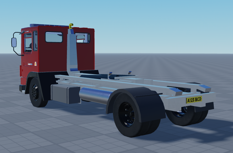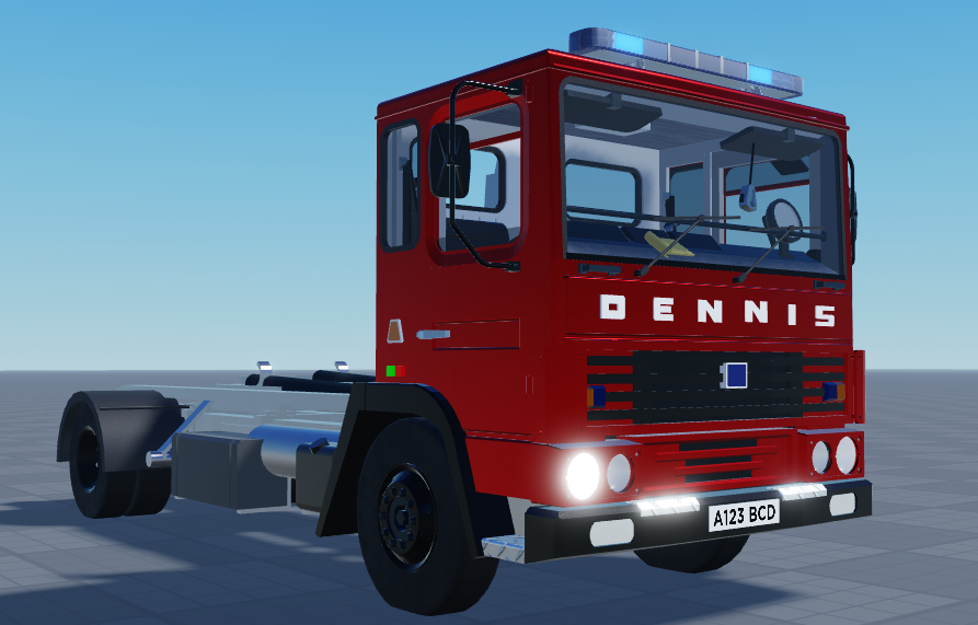 A dennis DF Prime mover with full working ELS with Halogen and strobe lights. and sirens, Easily interchangable pods on studio, comes with a basic, undetailed foam tender pod and detailed chassis