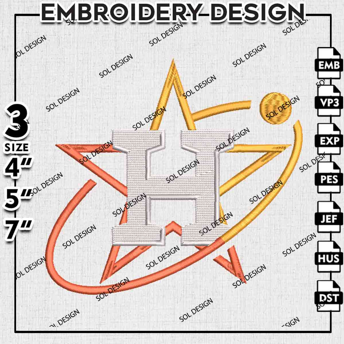 MLB Houston Astros Star Letter H Logo Embroidery Designs, MLB Houston Astros Logo Embroidery Files, Baseball League Logo Embroidery, MLB Astros Team Machine Embroidery Design, 3 sizes, Digital Download