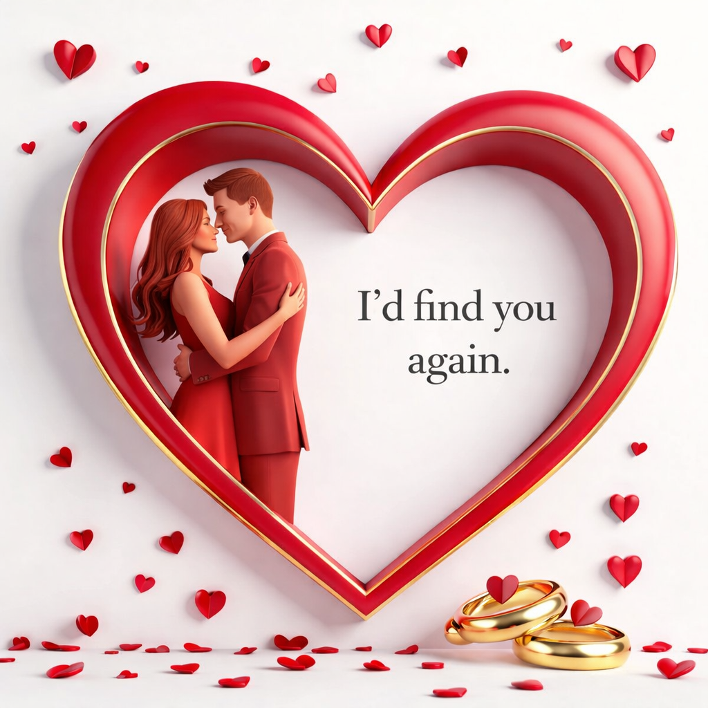 Romantic embrace in a heart-shaped frame.