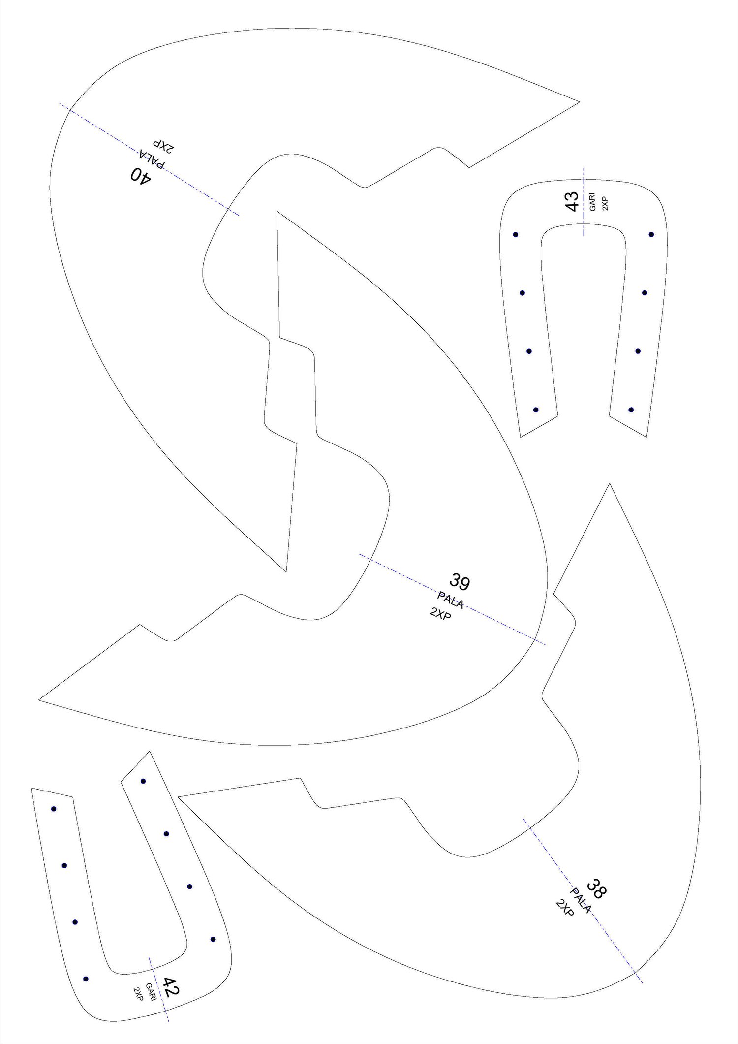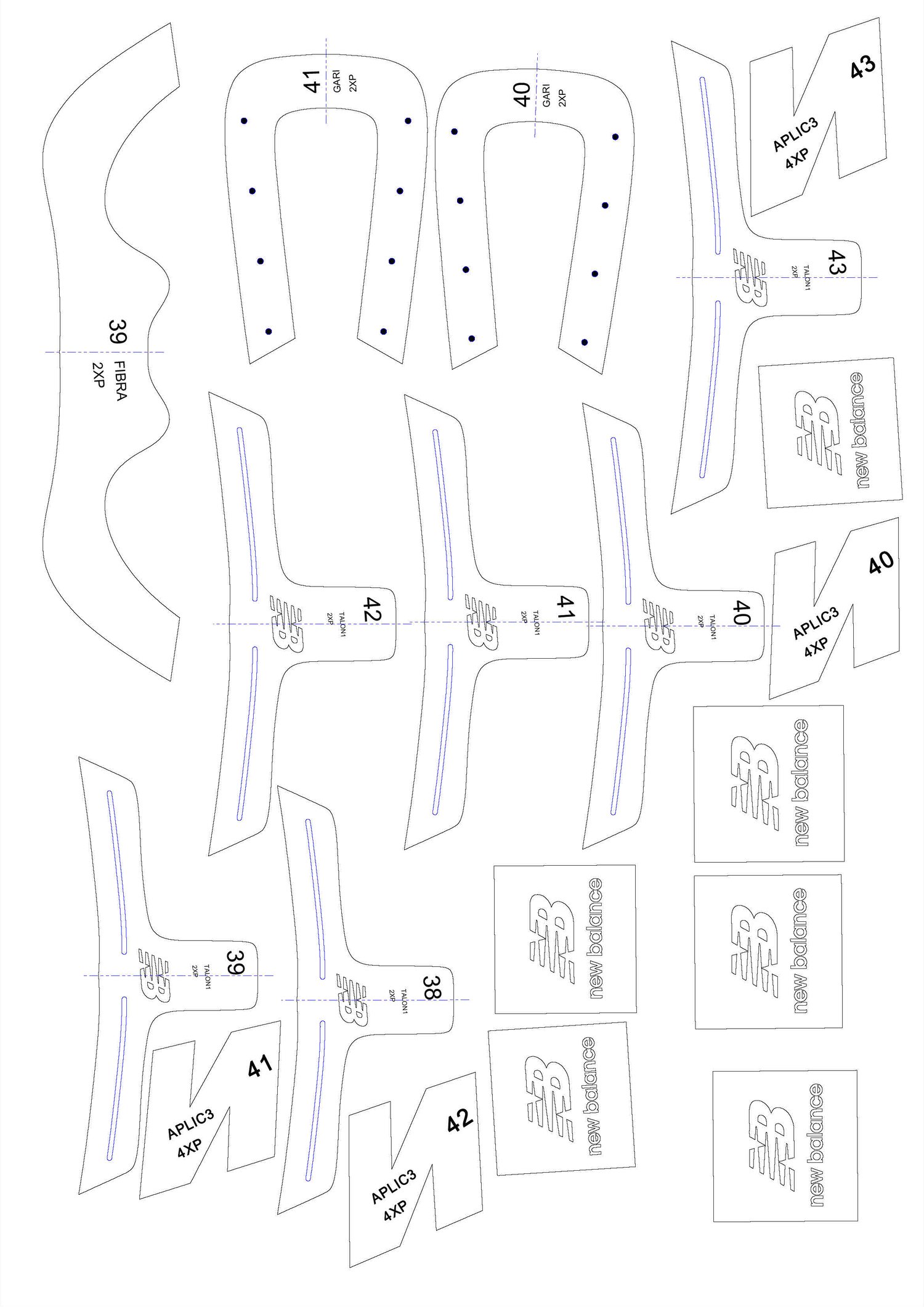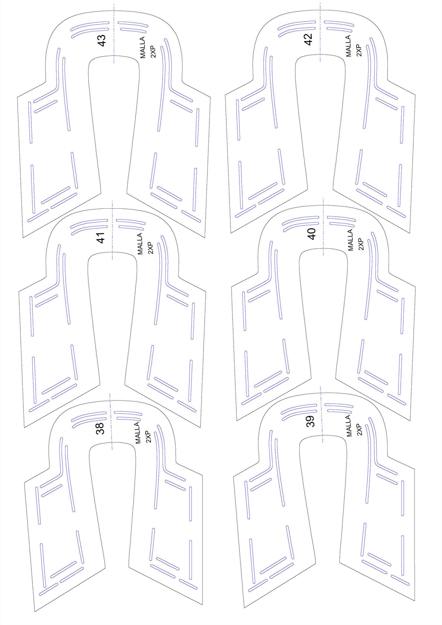 PATRON SERIADO DEL 38 AL 43 PDF, HOJA A3. LISTO PARA INPRIMIR EN TAMAÑO REAL O AL 100%.