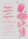 Pink Hand Drawn Pizza Popcorn and Pajamas Party Birthday Invitation, Sleepover Birthday Party, Movie Slumber Party, Pizza Digital Invite