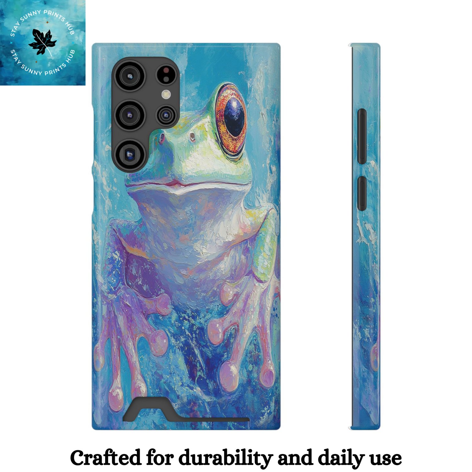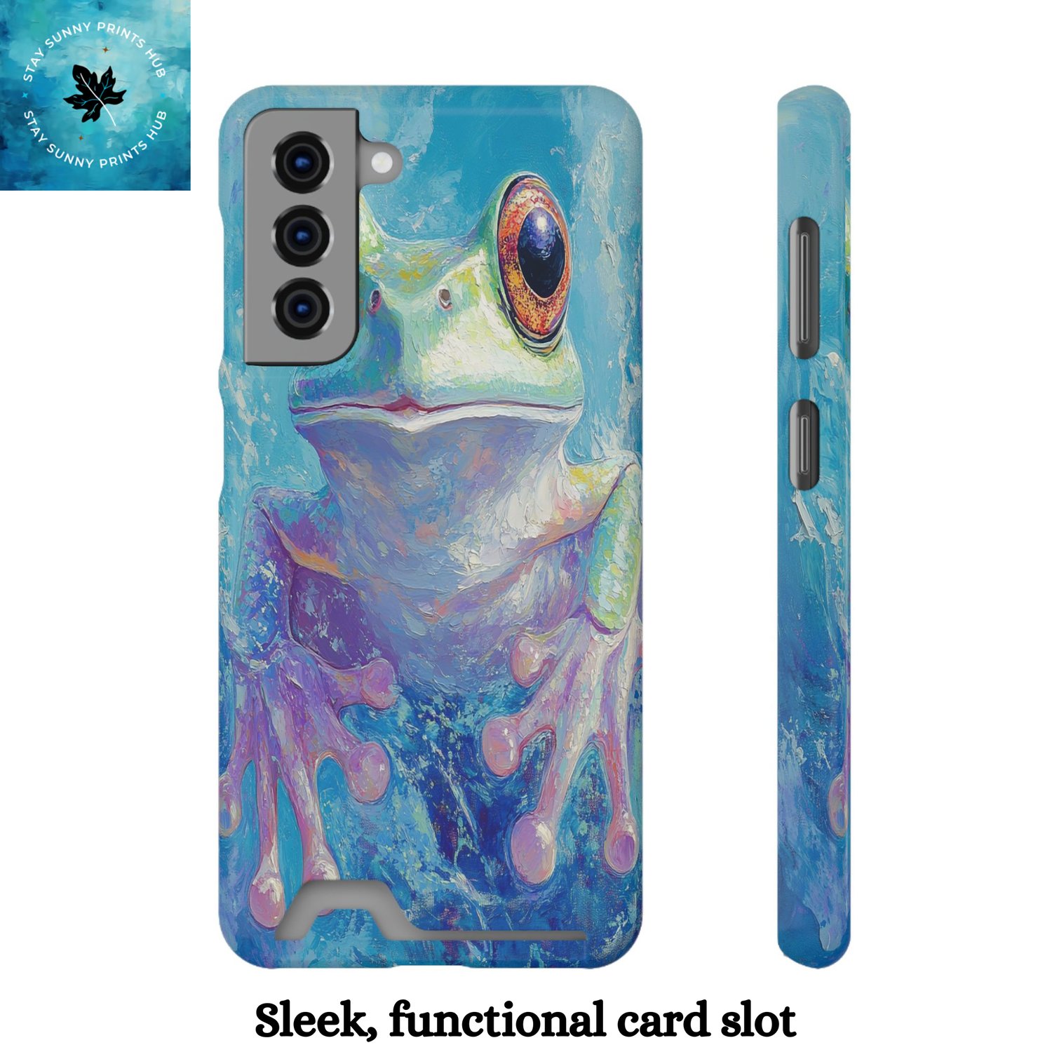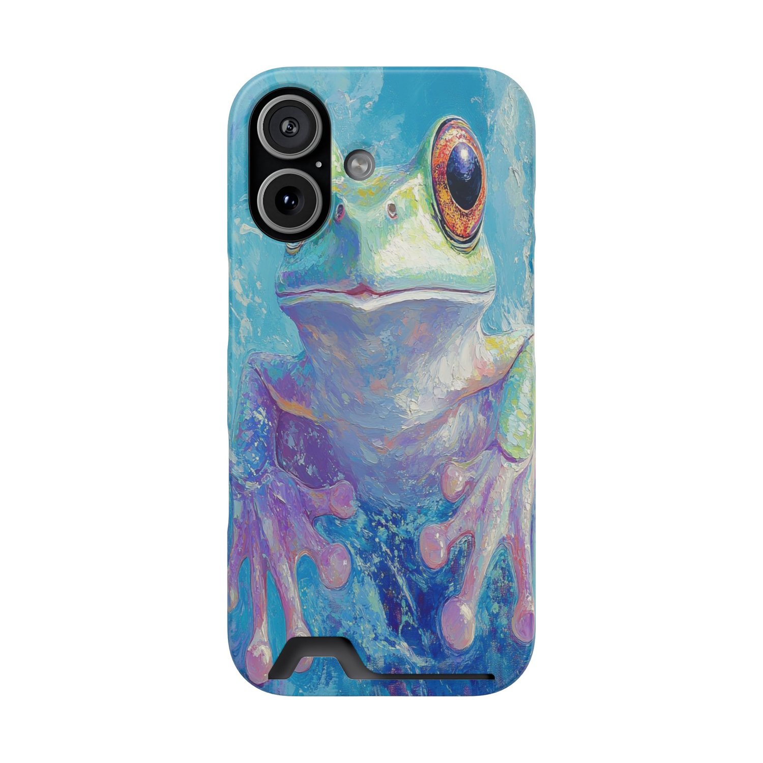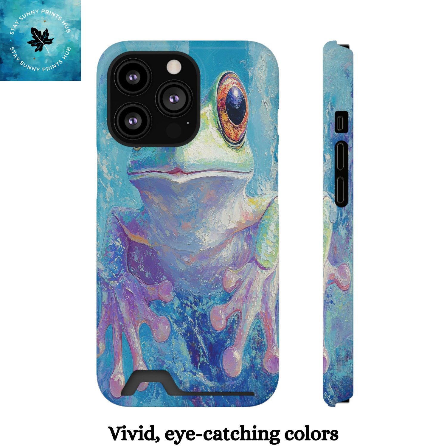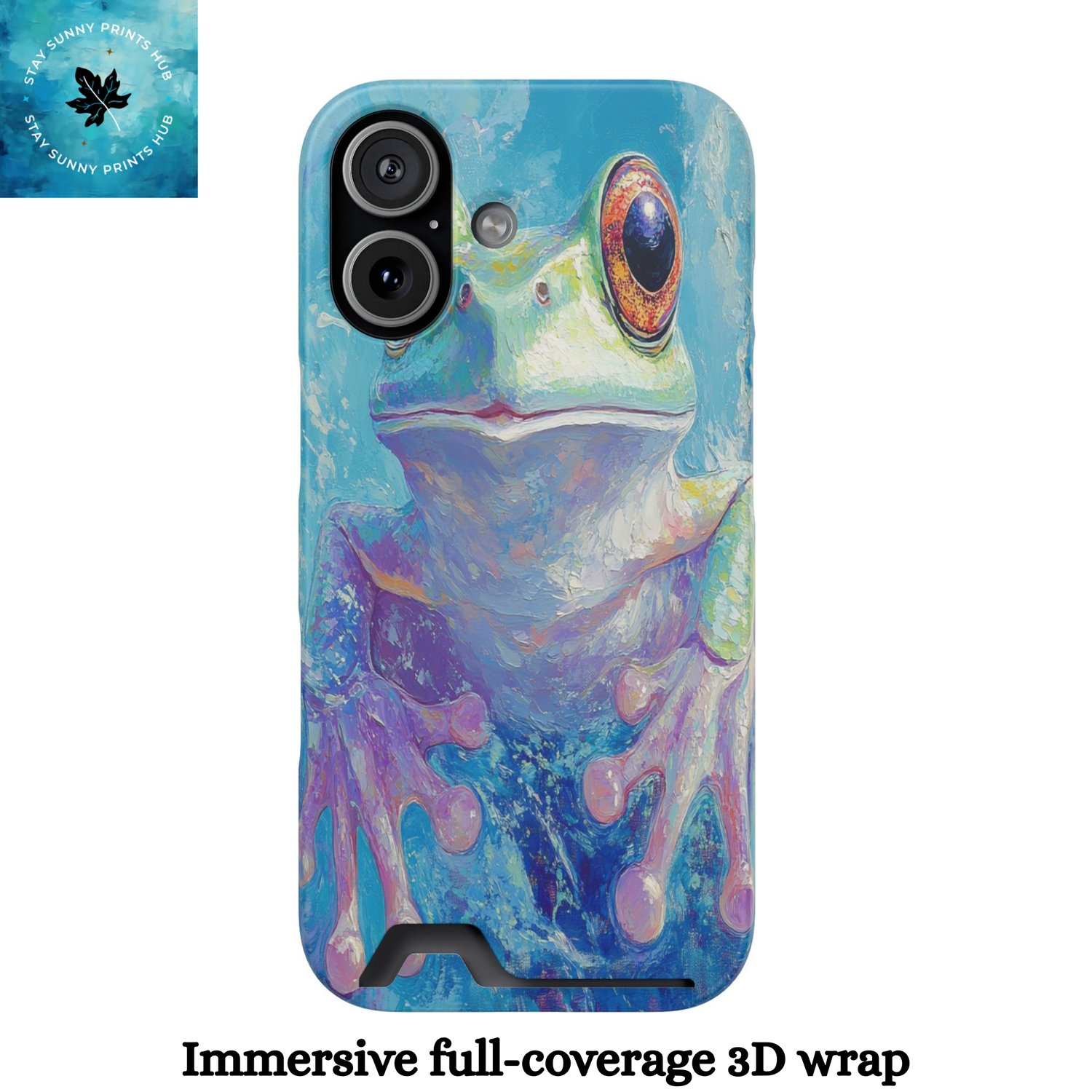 Designed for style and convenience, this slim case includes a built-in back card slot for one essential card. Made from 100% impact-resistant polycarbonate with full-wrap, high-density printing, the artwork stays vivid and fade-resistant. MagSafe-compatible with precise port cutouts, this case is available in gloss or matte finishes — ideal for amphibian lovers, fantasy art enthusiasts, and collectors seeking a unique, magical accessory.
