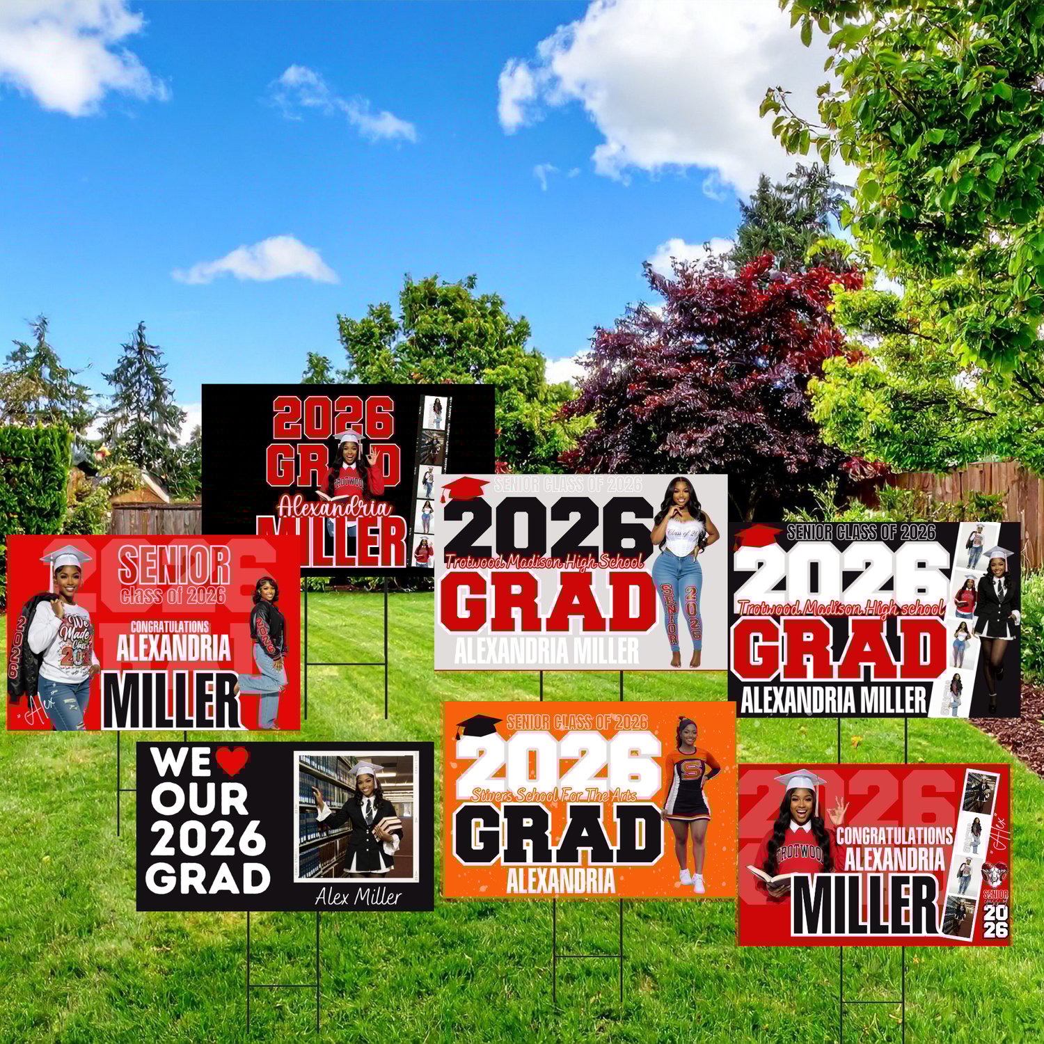 Editable Graduation Yard Signs Bundle – 7 Canva Templates | Class of 2026 Grad Lawn Signs