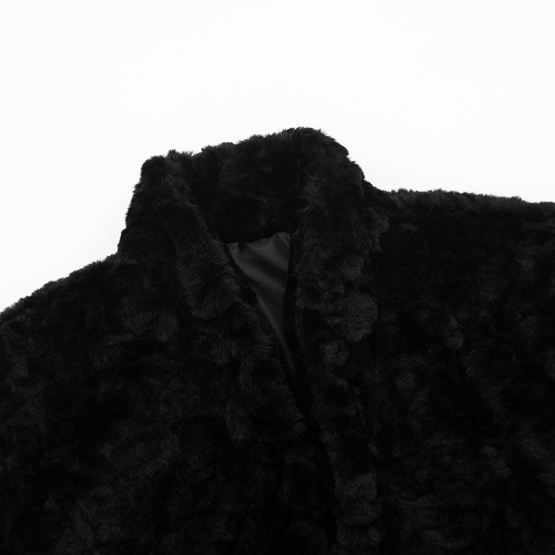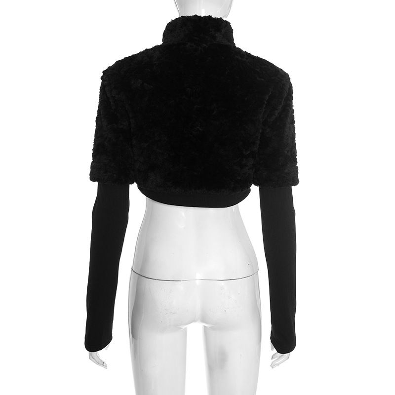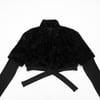 Designer retro black high-waist cropped fuzzy lace-up cardigan top
