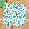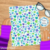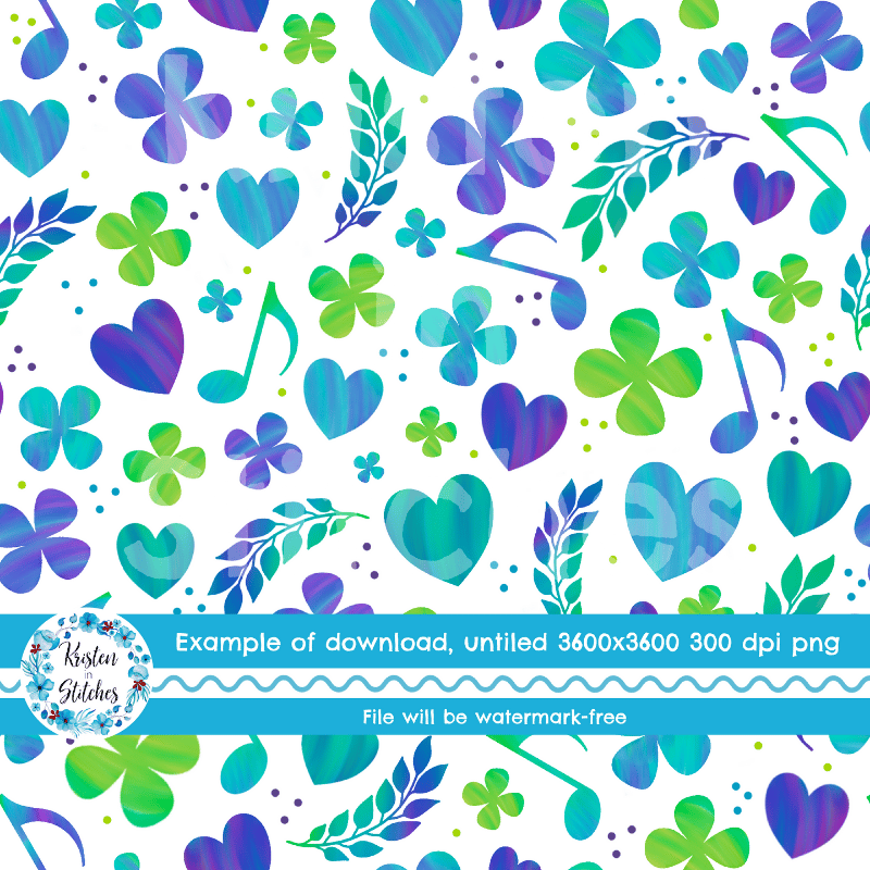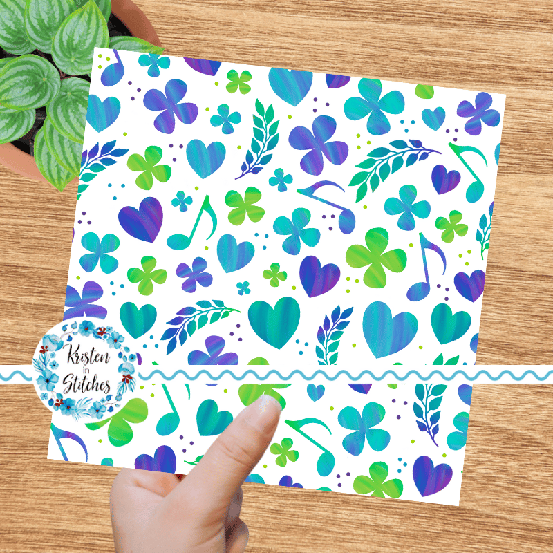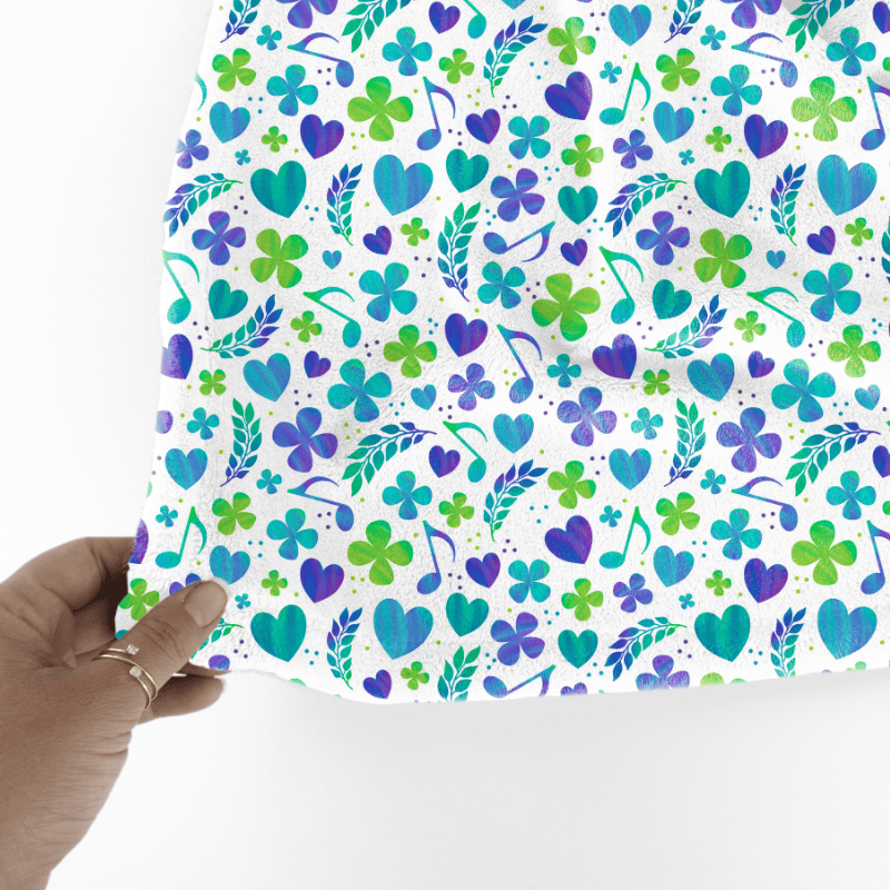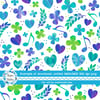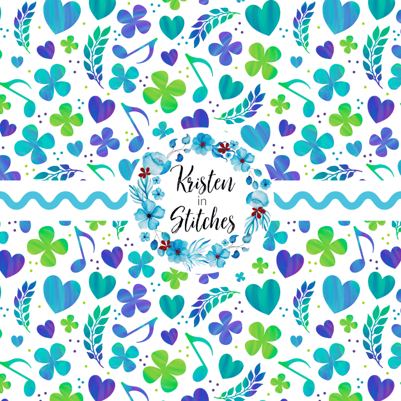 Coordinate for What the World Needs Now is Love Sweet Love pattern with purple, green and turquoise hearts, flowers and music notes.