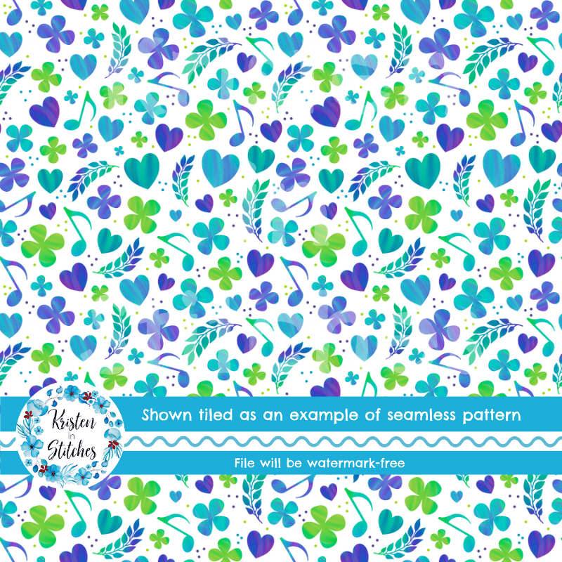 Love Sweet Love Music Notes Hearts and Flowers Seamless Pattern