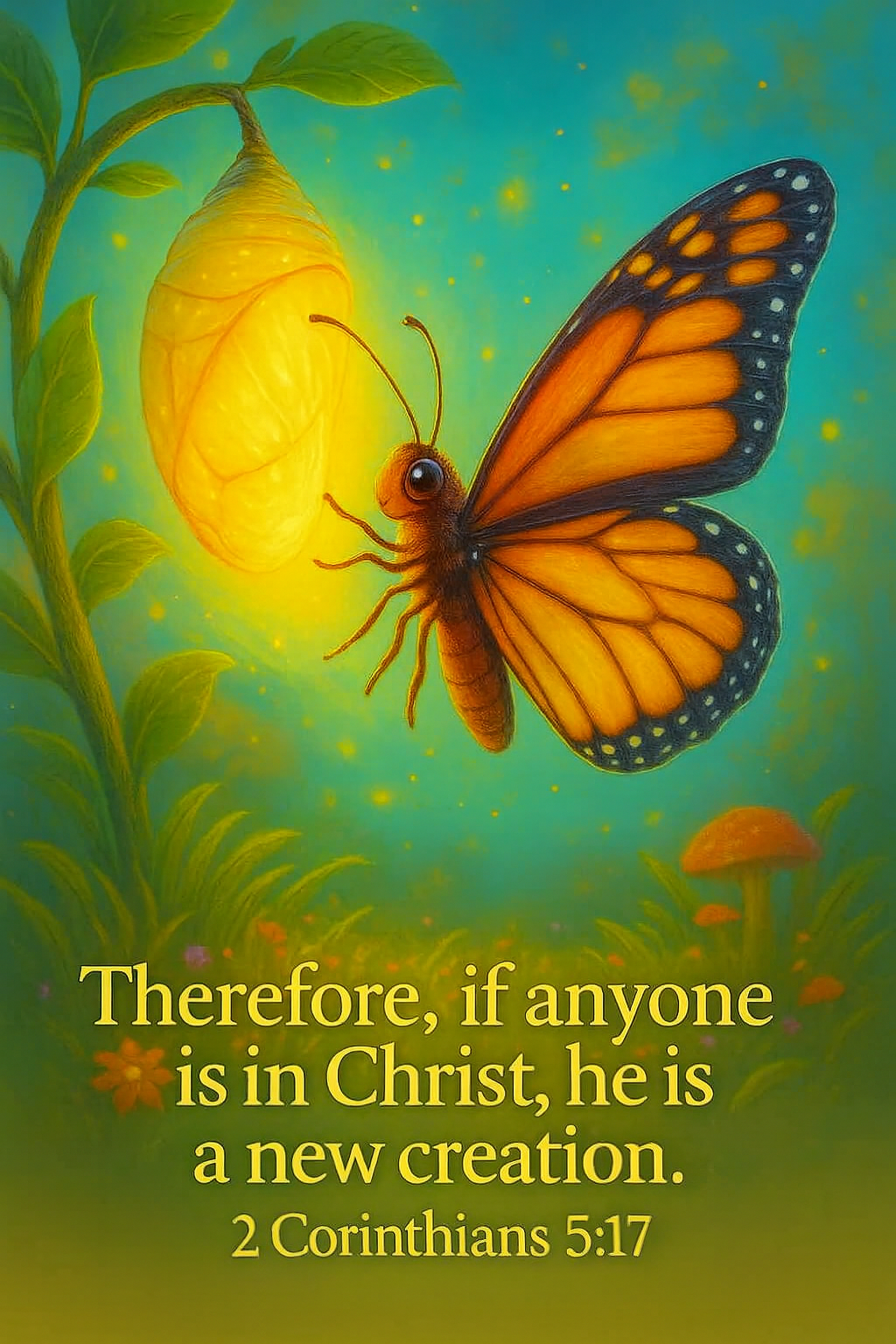 🦋🌿 Christian Kids Scripture Wall Art – 2 Corinthians 5:17 Butterfly Poster – Faith-Based Printable for Homeschool, Devotion & Ministry – New Creation Theme