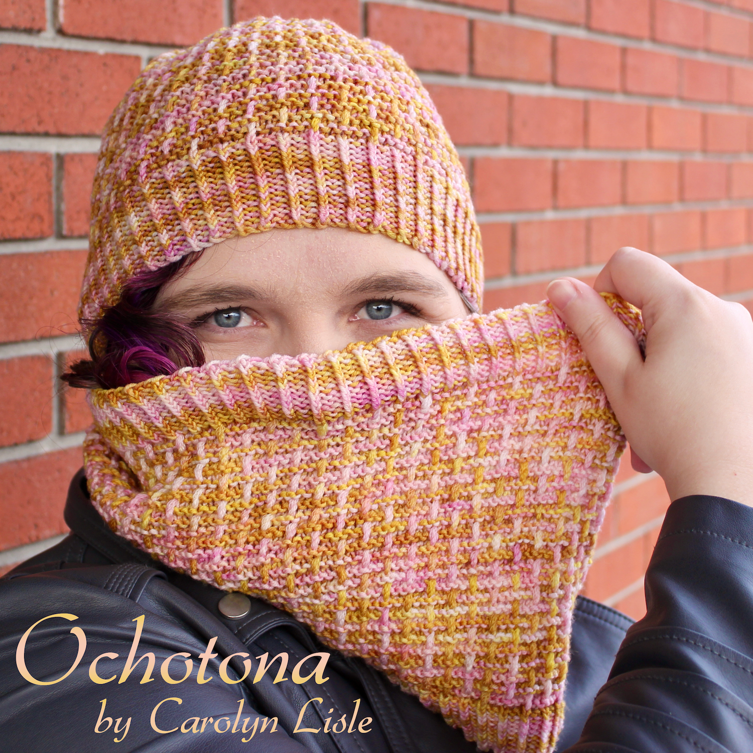 The Ochotona Hat and Cowl are inspired by Ochotona collaris, the Collared Pika. Pikas live in the mountains of northwestern Canada, collecting vegetation in a frenzy all summer, then staying active while eating from their accumulated “haypile” all throughout the long winter. This stitch pattern reminds me of that haphazard stack of flowers, grasses, and leaves, all carefully stockpiled under a boulder by a tiny, adorable mammal. (Did I mention that they make possibly the cutest squeaking noise ever?)