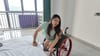 Shera secretly bought a pair of black lace-up high heels, as she was very envious of girls who could wear high heels. She wished so much that she could walk down the street in beautiful high heels like those girls. So she specifically wanted to wear them today, but unfortunately, she couldn't keep the high heels on. Her feet were too small.