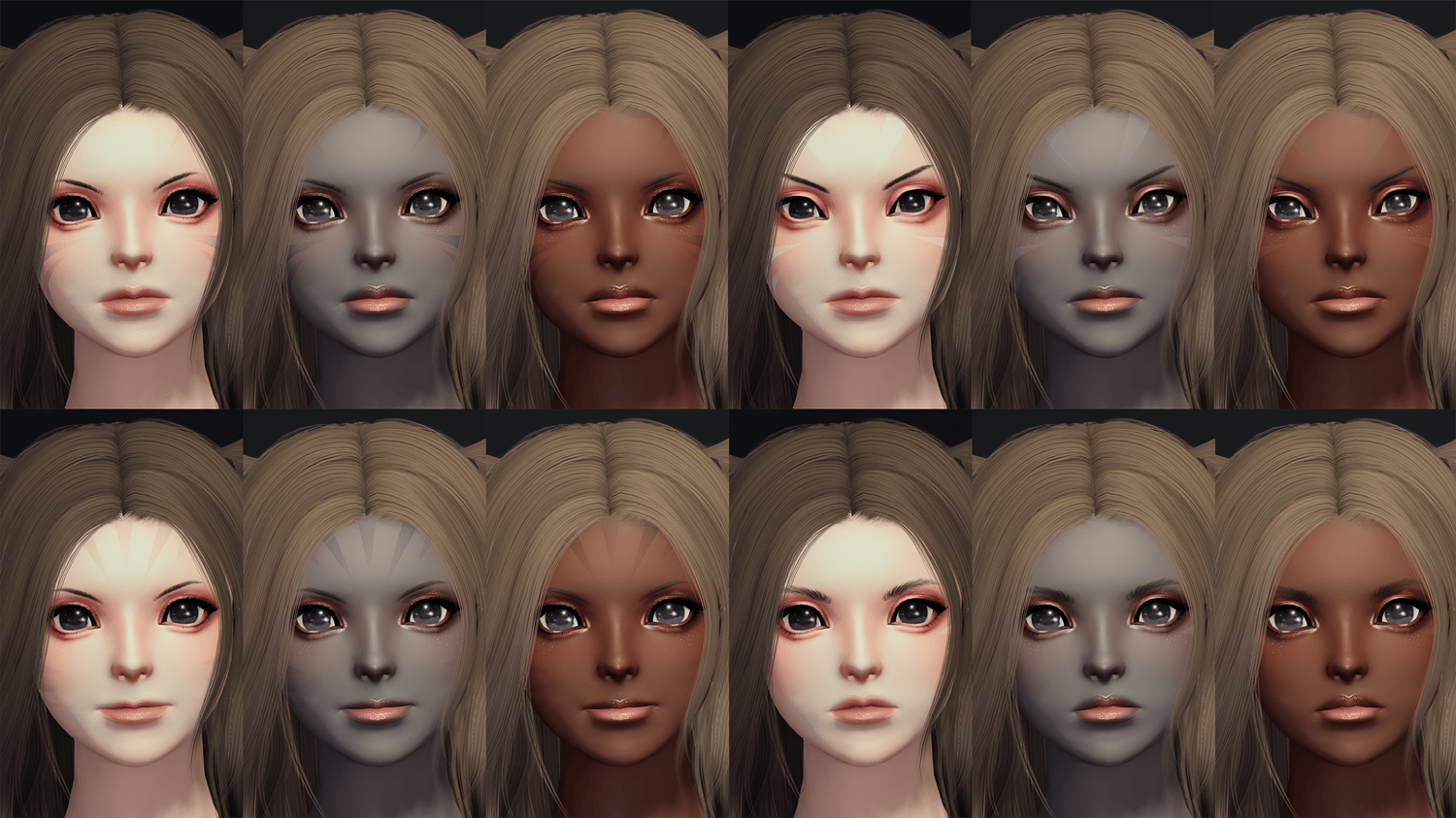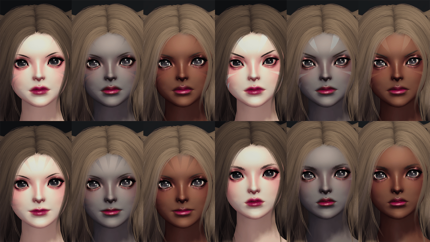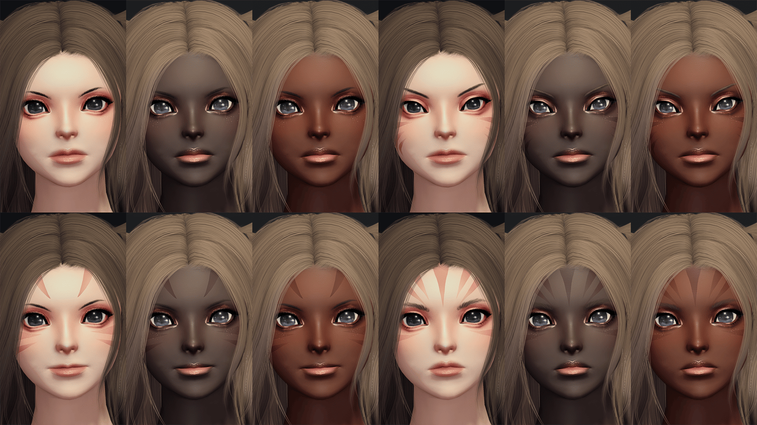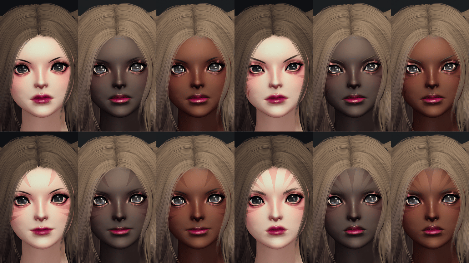 The makeups are made for: All Midlander, Miqo'te, AuRa, and Viera faces!