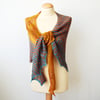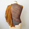 Honey & Stripes is a simple yet stylish triangular shawl knit sideways on the bias. The combination of striped garter stitch, easy to memorize garter stitch lace, and slip stitch patterning makes it a perfect choice for those colors of fingering weight yarn that combine so well. With its generous size, Honey & Stripes is perfect to wear as an elegant scarf.
