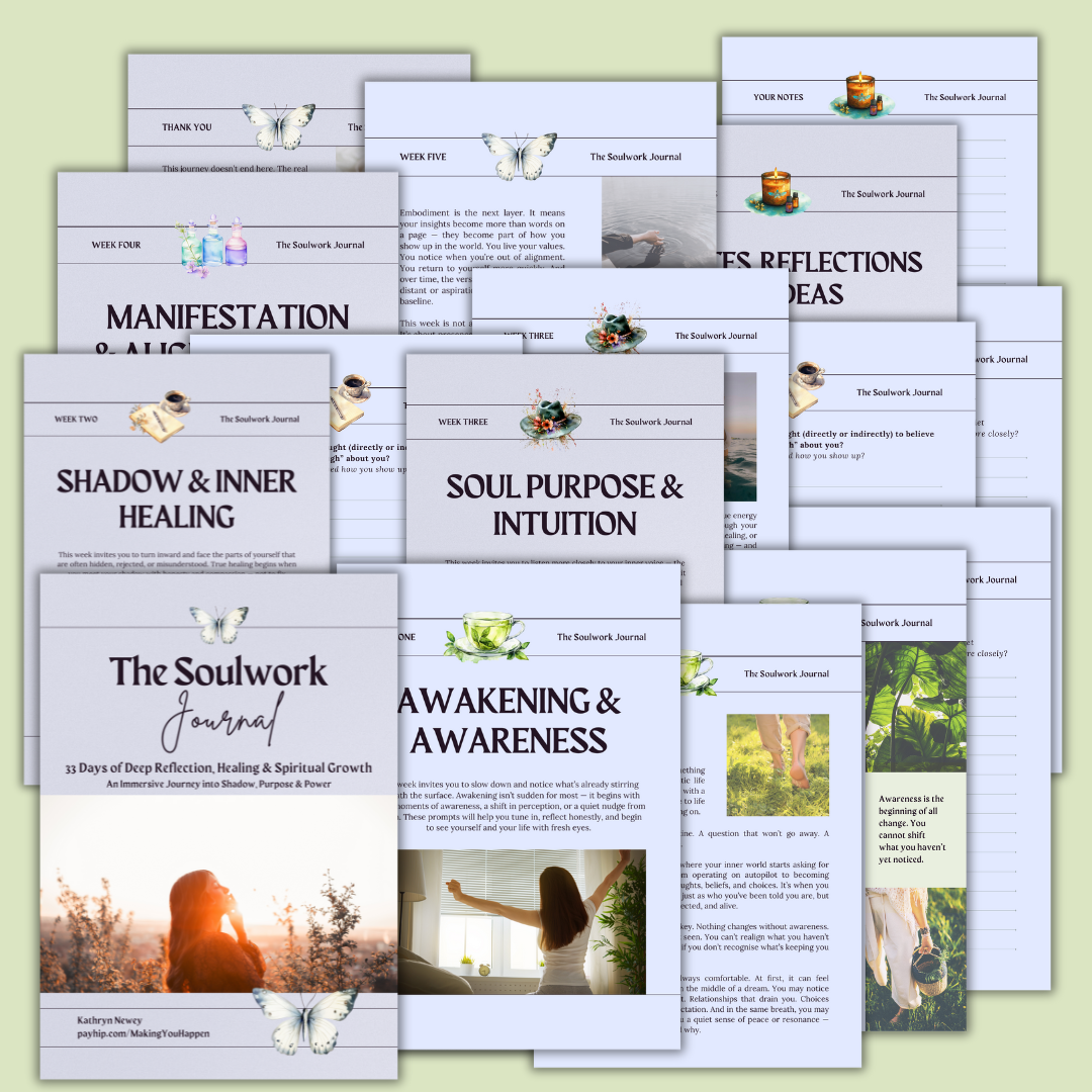 “When I couldn't find what I wanted from a journal - something that lead me on a self-awareness and healing journey, rather than just random prompts, I did some research and decided to create my own. It worked so well, I knew I had to share it.” - Kathryn, creator of The Soulwork Journal