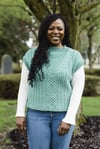 CONSTRUCTION: Ventisca is worked flat in pieces from the bottom up and seamed, making it easy to customize the side vents. Collar and armhole trim are picked up and worked in the round after seaming.