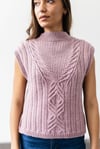 A cozy cabled piece specifically designed for layering! A split hem and long armholes make it easy to slip on over blouses, dresses or even lighter knits.