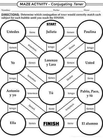 3️⃣ Tener Maze Challenge – A fun, fast-paced conjugation maze that helps reinforce accuracy and recognition.