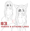 Comes with a human and kitsune/vulpine/feline version of the lines.