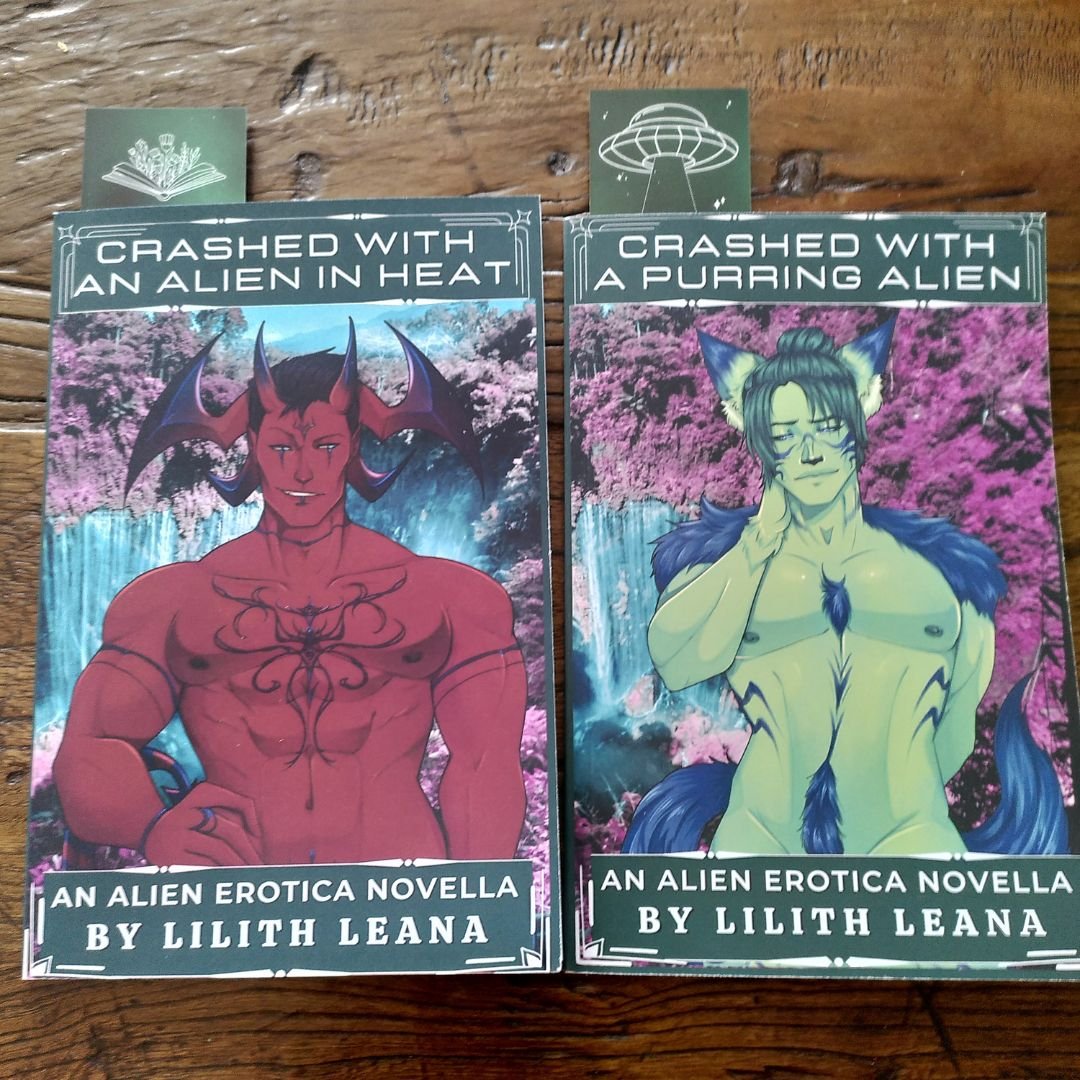 - 2 x 15k words, 52 pages signed paperback novella. Crashed with an Alien in Heat and Crashed with a Purring Alien