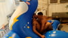 In this video Nelson and Kyllan have a giant Inflatable World blue seal.