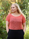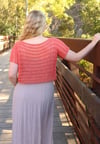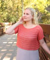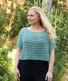 This top is knit in two matching pieces - Front and Back - that are seamed together at the sides, shoulders, and underarms. The design features a repetitive lace pattern that is as fun to knit as it is addictive. With the dropped stitches and cropped length, you’ll finish the Topanga Top in no time! The pattern is also easily customizable for a longer body length and/or a wider/smaller neckline. The design looks it’s best when knit in a heavier fiber like cotton or linen to create a beautiful drape in the dropped sts, but don’t let that stop you from using your favorite fingering weight yarn for your project.