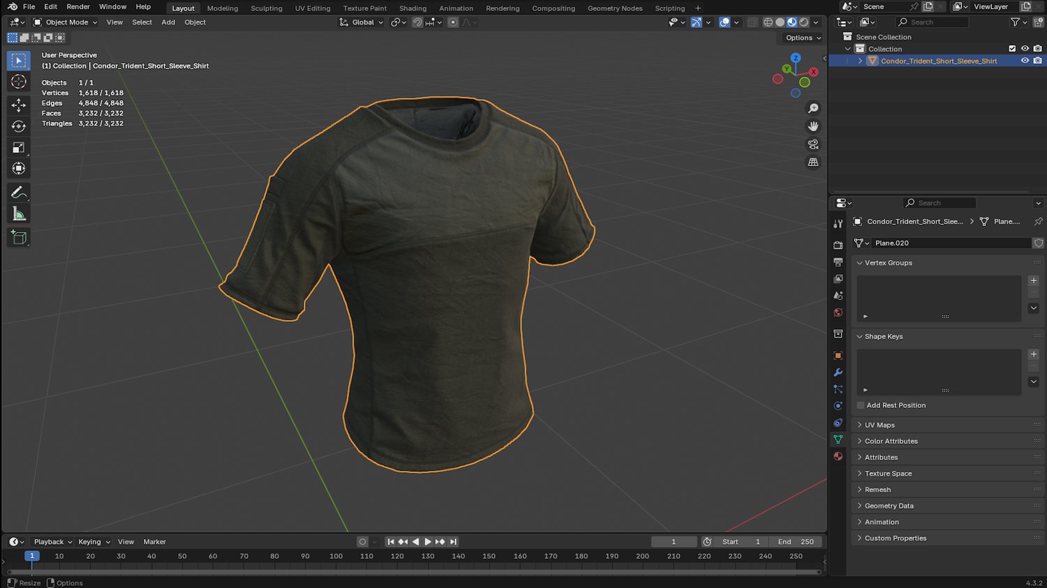Game-ready 3D model of the Condor Trident Short Sleeve Shirt. Great for games such as Arma 3, DayZ, Reforger, Ready or Not, etc. This model was made with care and with easy rigging in mind demonstrated by the grid-like topology.