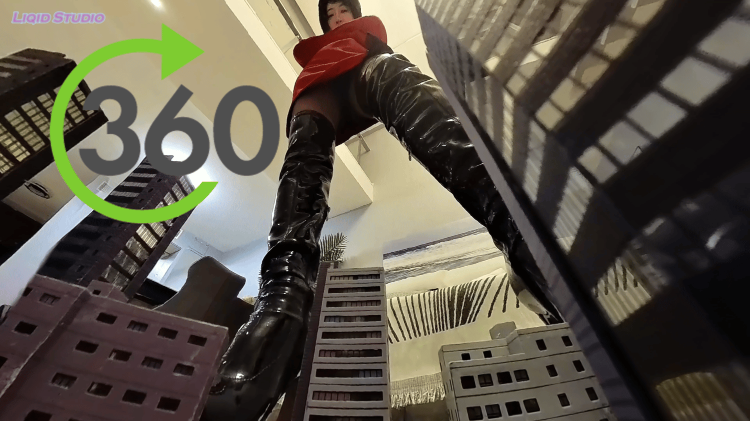 With seductive cruelty, she toys with the tiny inhabitants, mocking their fragile defenses and savoring the sound of buildings collapsing beneath her weight.