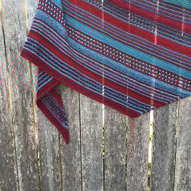 Sample knit in: Spincycle Yarns Dream State (100% superwash American wool; 150 yards per skein) in Melancholia (MC), and Devilish Grin (CC).