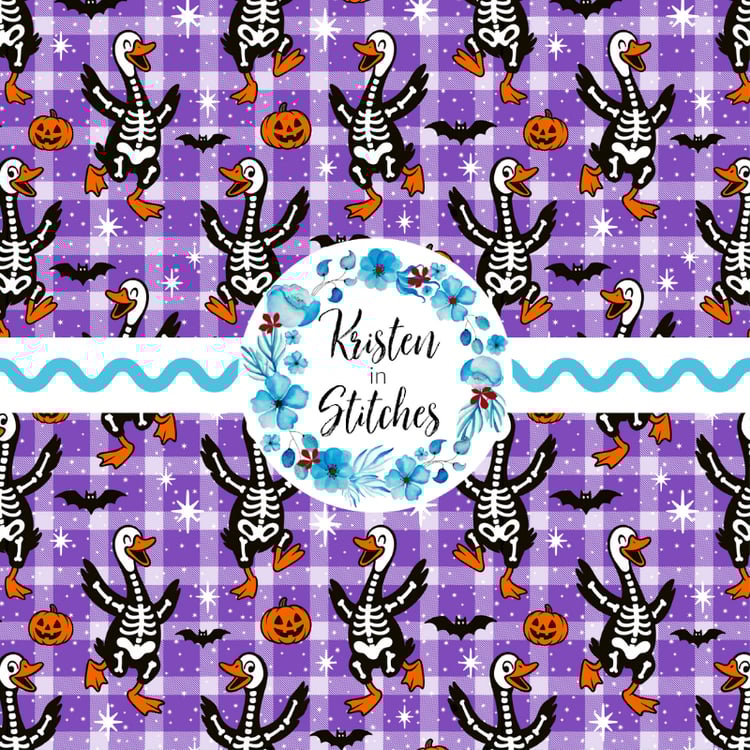 Features sarcastic skeletons and bats.
