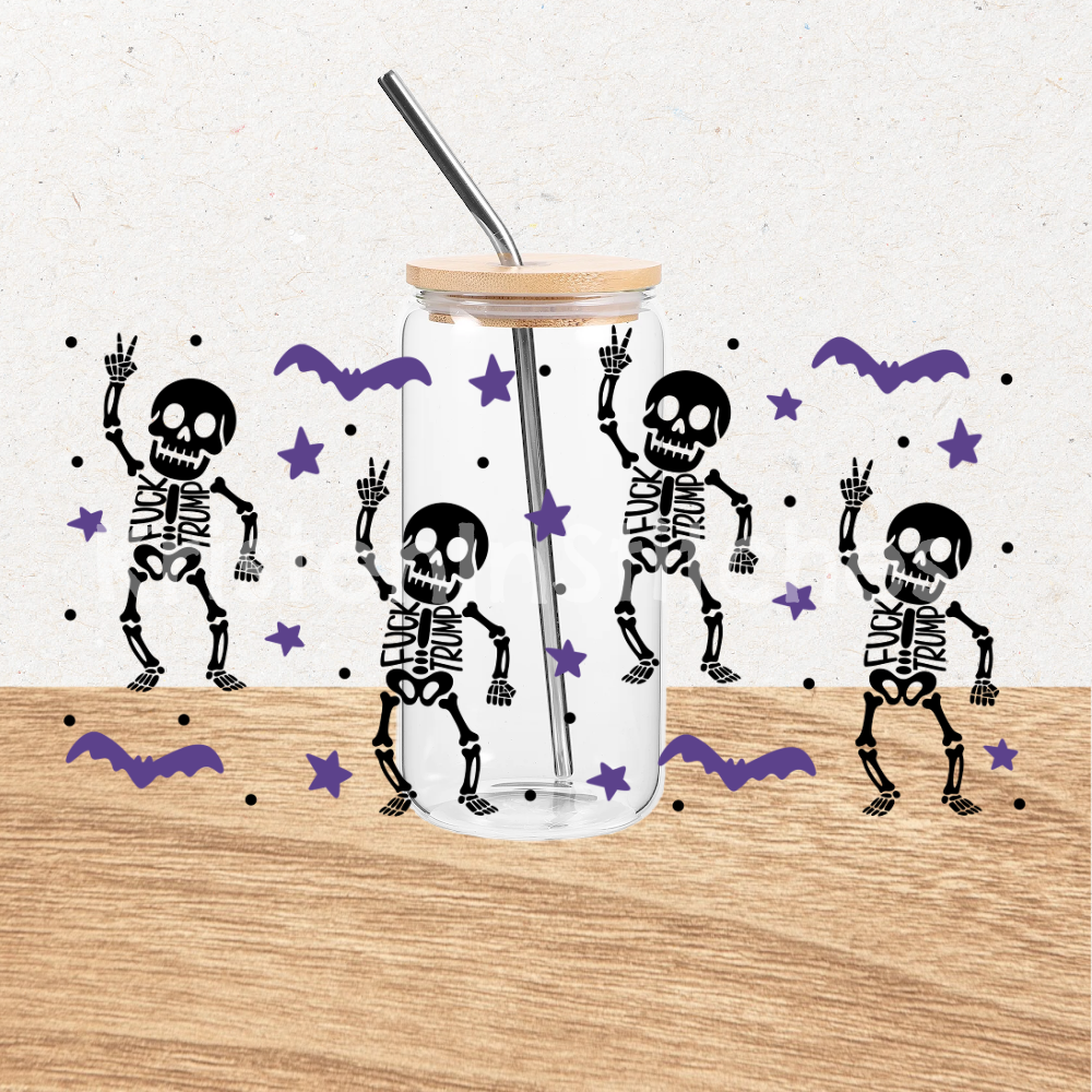 Subtle Fuck Trump Skeletons 16 oz Glass Can Wrap Transparent PNG, Sarcastic Political Humor