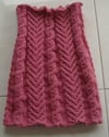 This knee length cabled skirt is worked in rounds so there are no side or back seams and it has a slightly tapered shape from the lower edge up to the waist. Being 12ply yarn, this skirt knits up quickly. It will be very warm and look extremely cute when teamed with tights or boots.