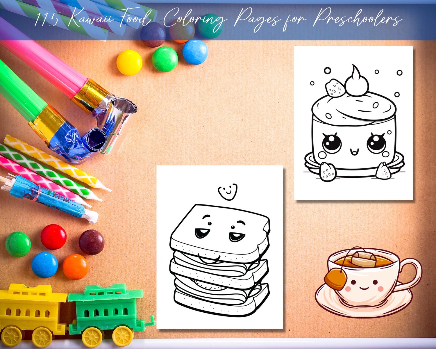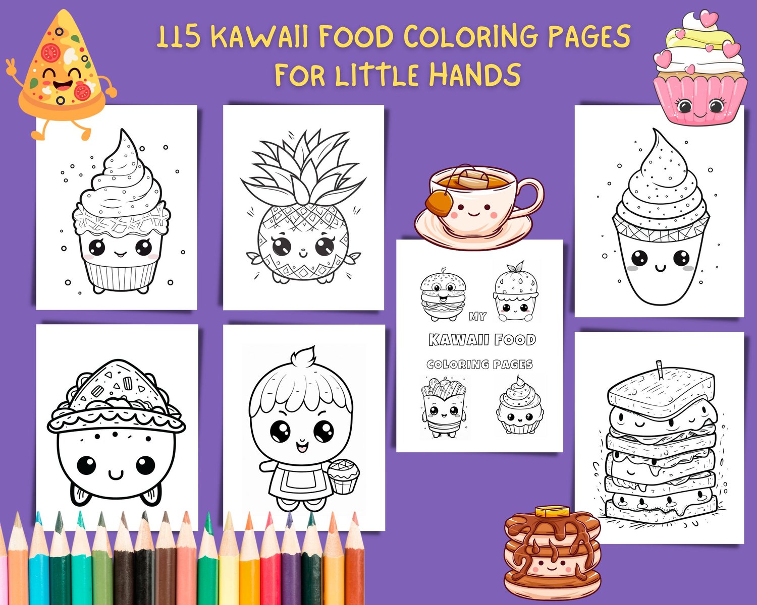 115 Printable Kawaii Food coloring pages for kids, toddlers, preschoolers, 115 Kawaii Food Coloring Pages for Preschool Kindergarten