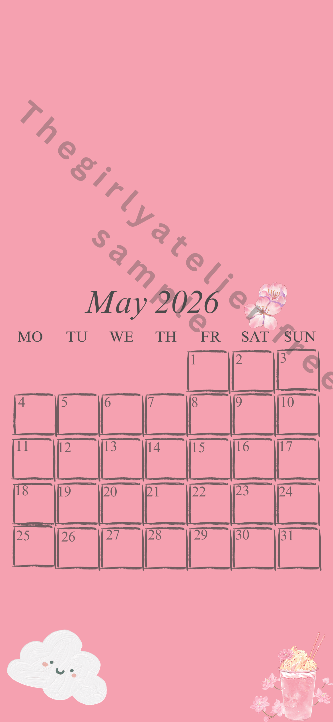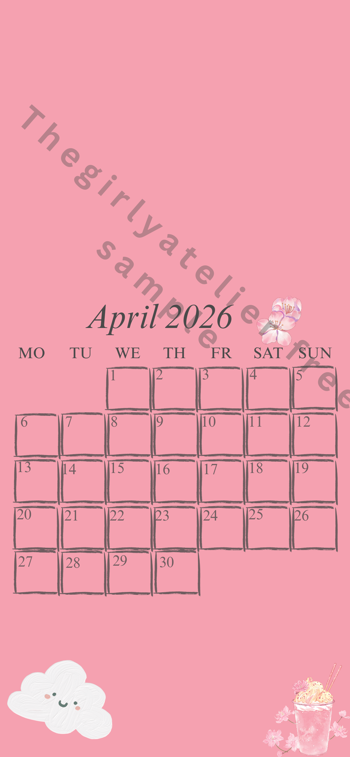 A pink monthly wallpaper for mobile! This is actually not a free sample! just my watermark for the preview image :) Only for April and May atm.