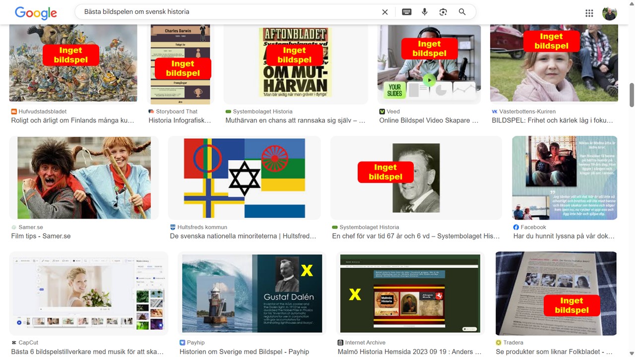 Sökning på Google bilder: "Bästa bildspelen om svensk historia"