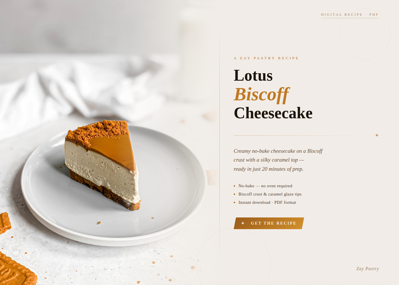 Lotus Biscoff Cheesecake Recipe – Easy No-Bake Dessert Ready in 20 Minutes (PDF)