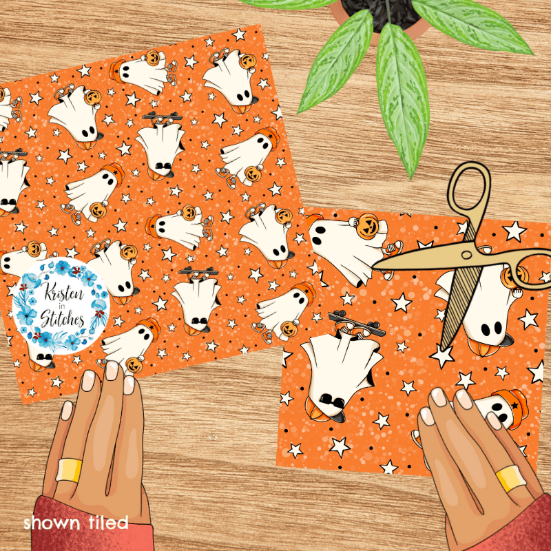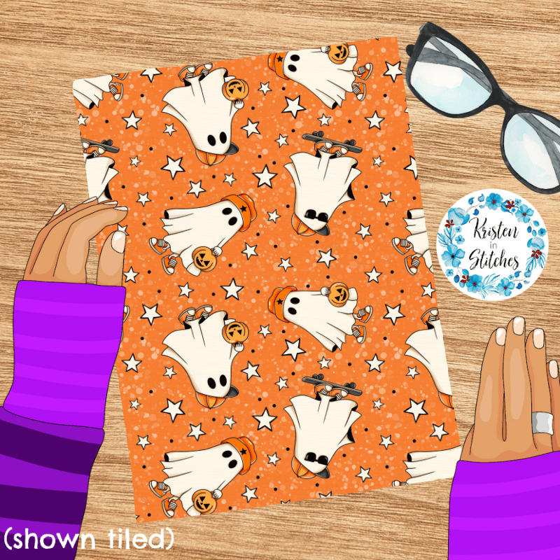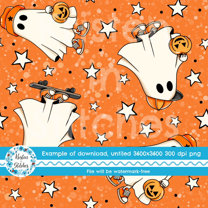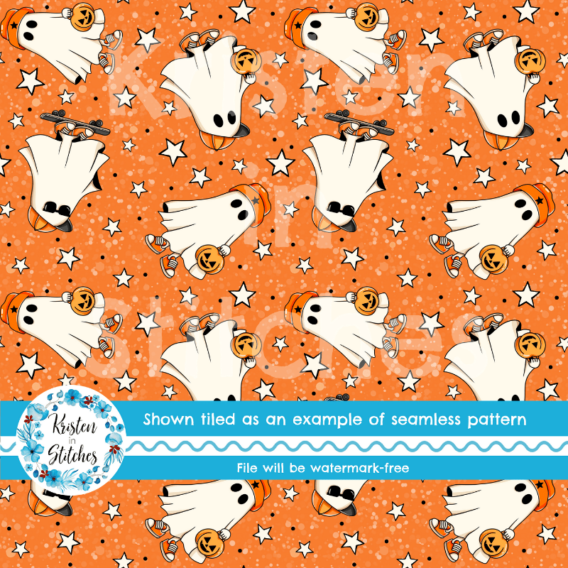 Cool Kids Skateboarding Ghosts Halloween Seamless Pattern