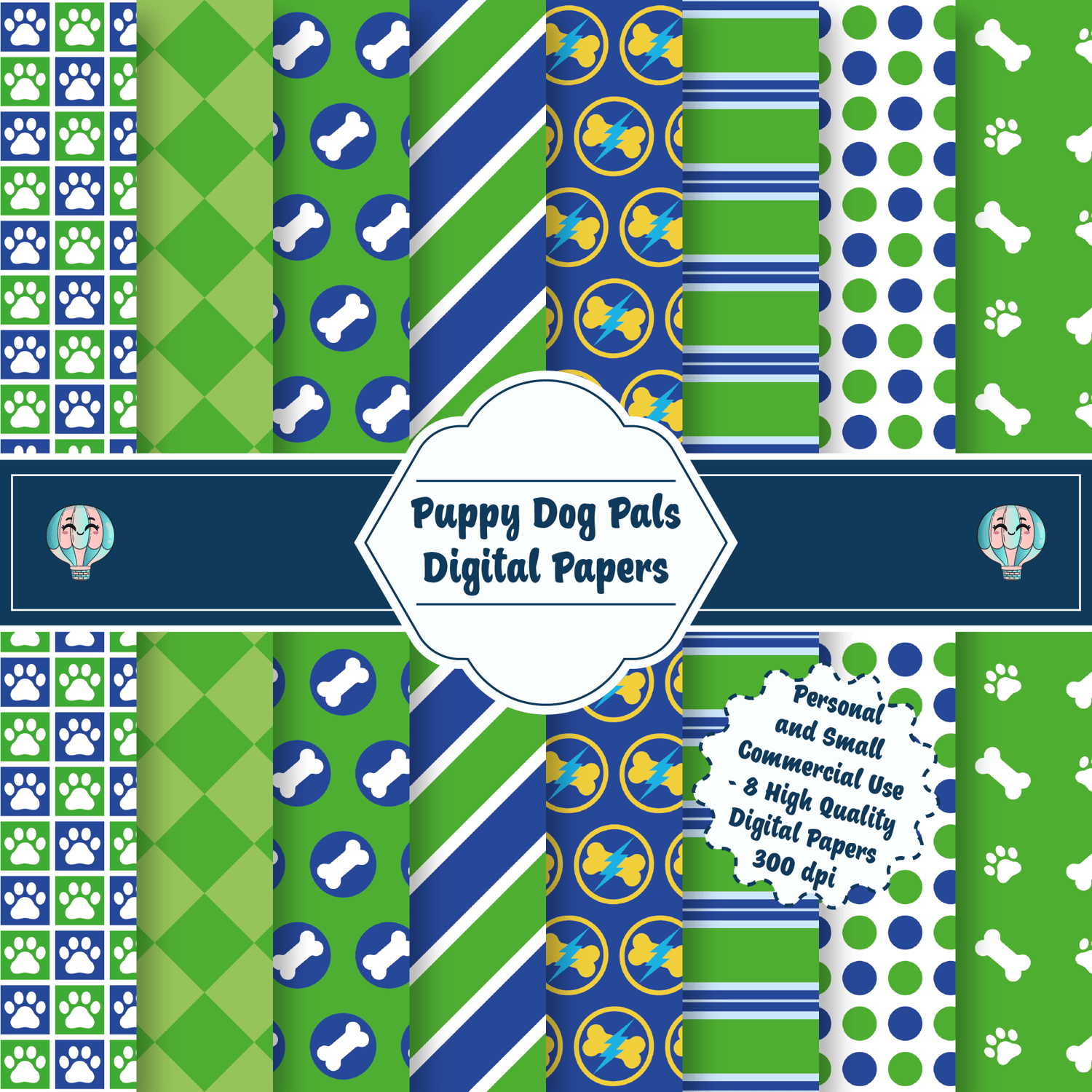 PUPPY DOG PALS Digital Papers - High Quality Designs - 8 Patterns - 12 in x 12 in - 30 cm x 30 cm - Ready to Print and Cut