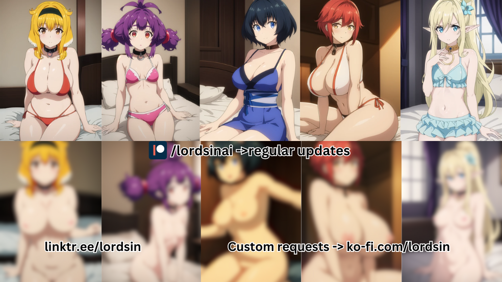 5 SFWs and 5 NSFWs of 5 characters (roxanne, sherry, vesta, miria, rutina) from Isekai Meikyuu De Harem