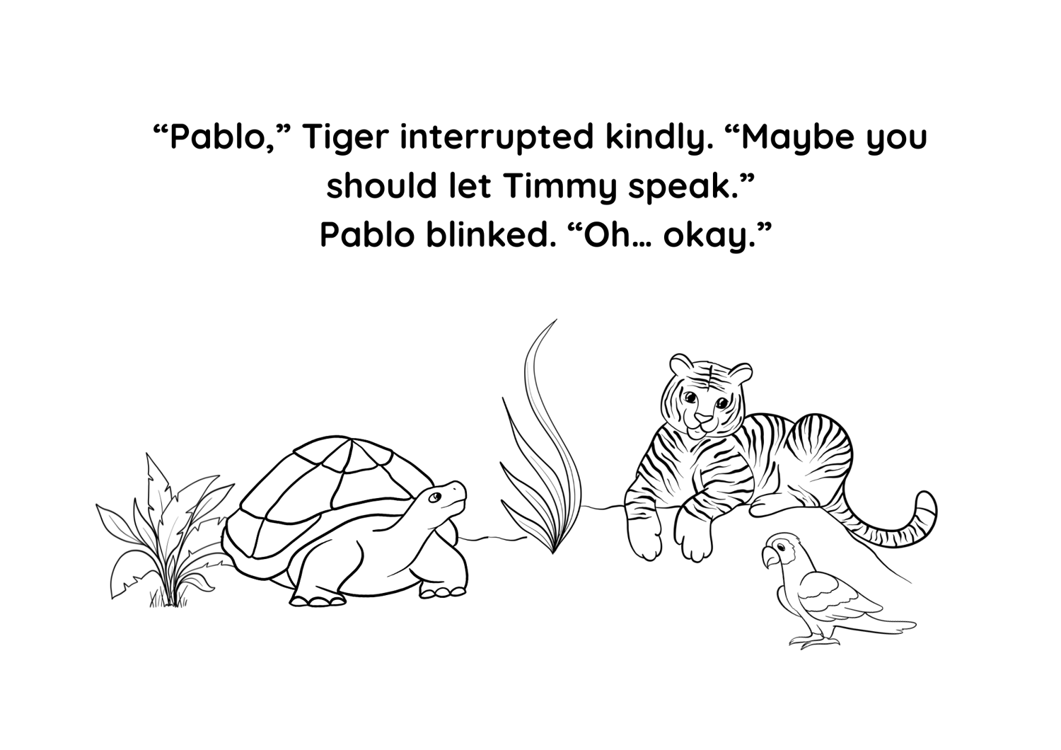 When Pablo meets Timmy the Turtle, he soon discovers that listening is just as important as talking. Together they travel through the jungle, meeting tigers, lions, monkeys, lemurs, and more — and Pablo learns that sometimes, the best way to help is to listen first.