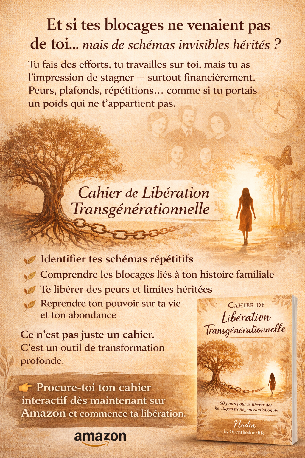 Ce journal guidé t’accompagne pendant 60 jours dans un véritable voyage de libération intérieure pour comprendre, transformer et dépasser les héritages émotionnels et transgénérationnels qui influencent ta vie sans que tu en aies toujours conscience.