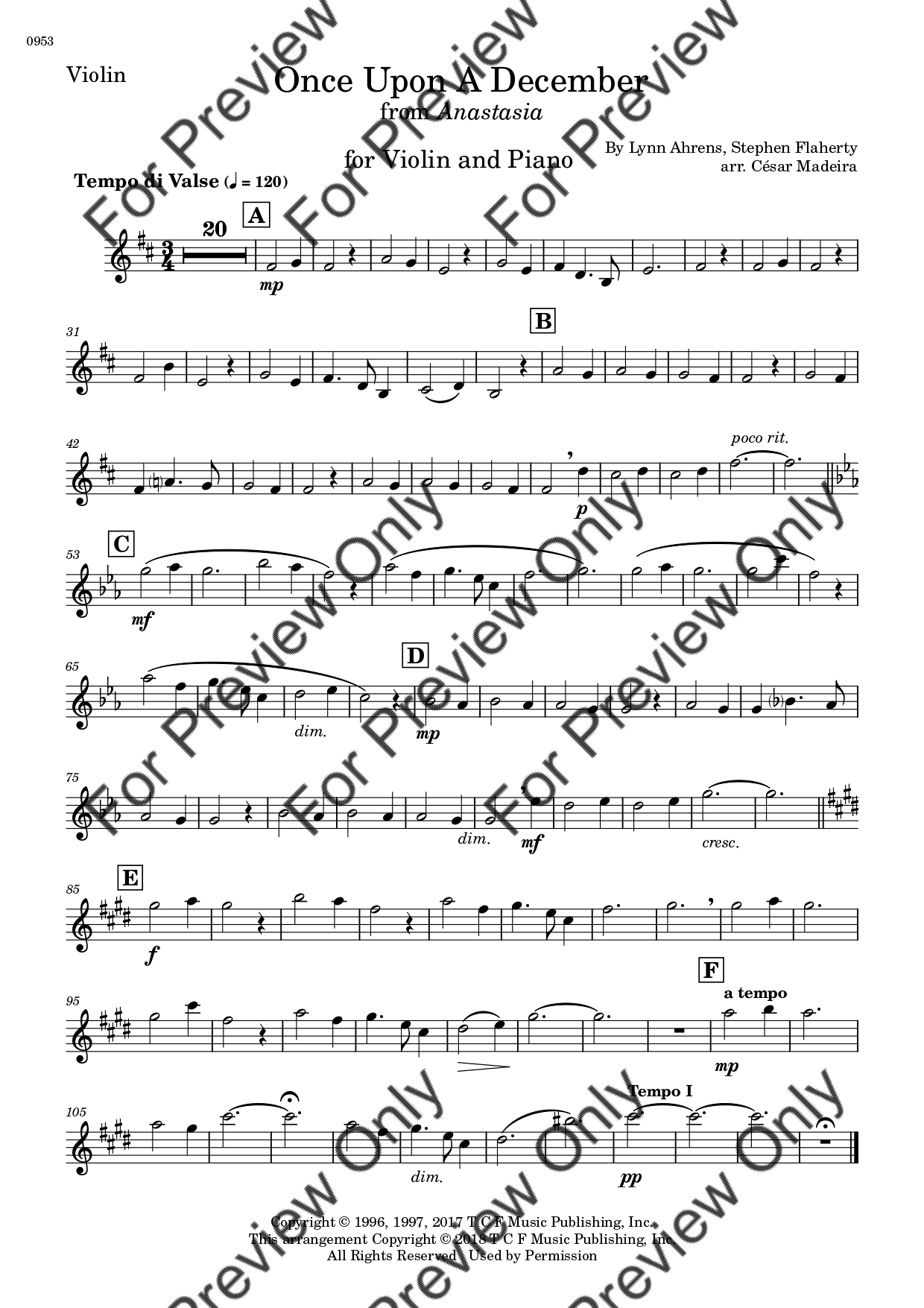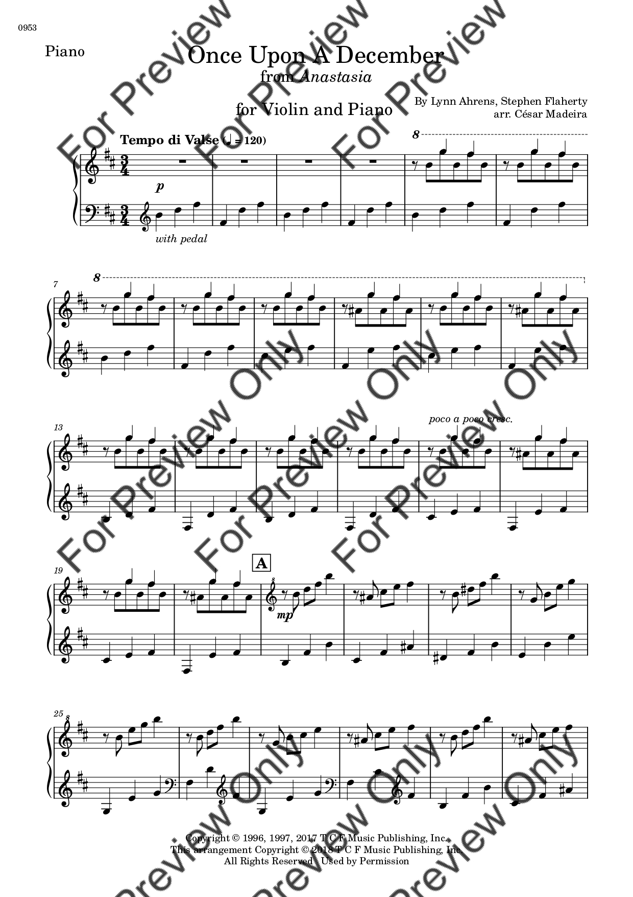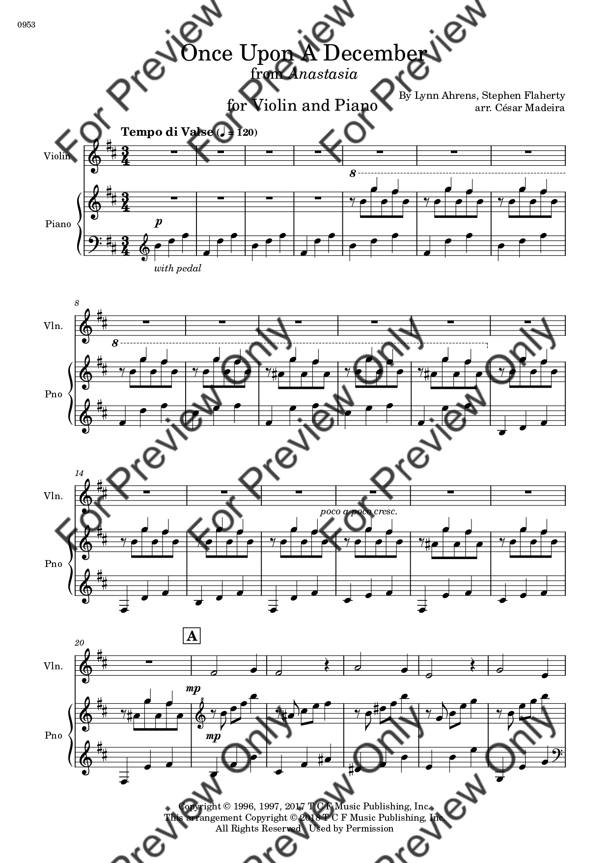 Once Upon A December from Anastasia. Arrangement for Violin and Piano. With Full Score and Individual Parts. Have fun!