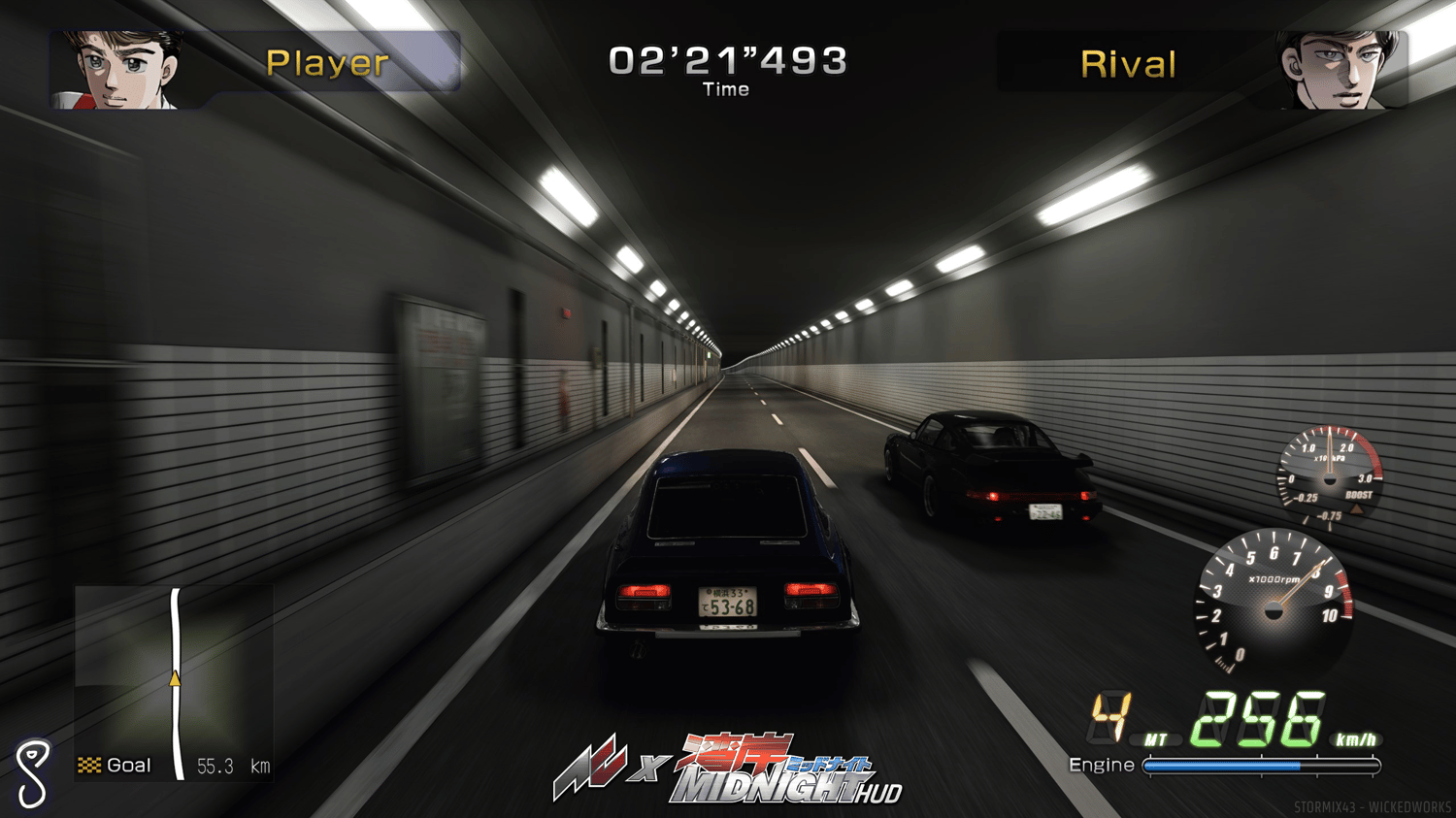 After a year of development, after coding many unique for me things that i never knew or learned about, after handpicking and drawing/restoring character icons to their "alleged" original design, after going back-n-forth with design decisions, it's finally here, the Wangan Midnight PS3 HUD at (Almost) it's all glory for Assetto Corsa completely for free ( ! ), a special gift from me to the Assetto Corsa and Wangan Midnight community and the celebration for Genki's full throttle return to game development!