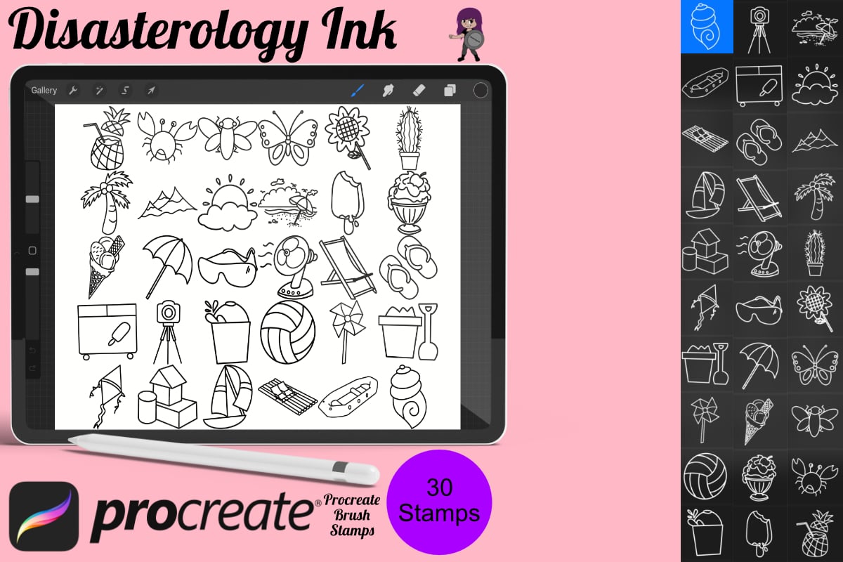 Procreate stamps save time when drawing, saving the effort of having to recreate the same thing for multiple designs and projects, save time on your design by purchasing these summer brush stamps so you can utilise that time on creating more beautiful art.