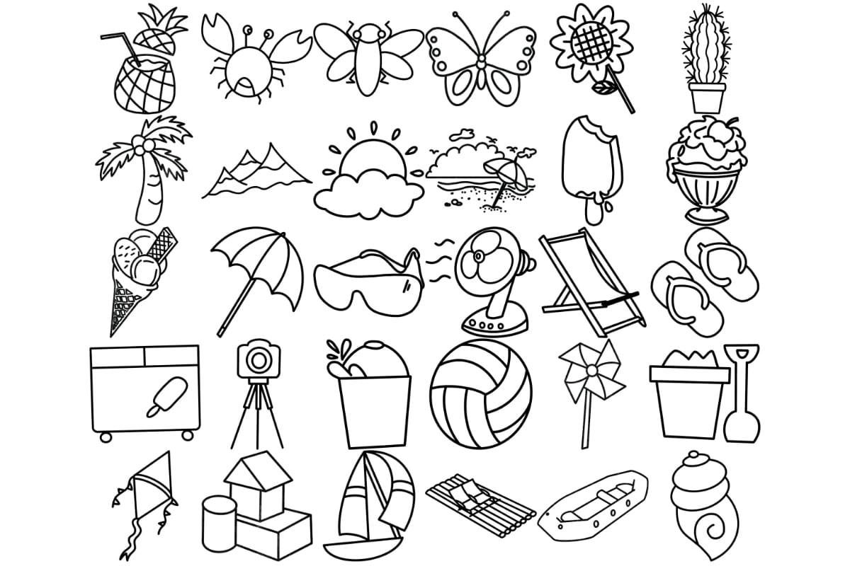 Summer Elements Set 1 Procreate Brush Stamps, 30 Summer Stamps