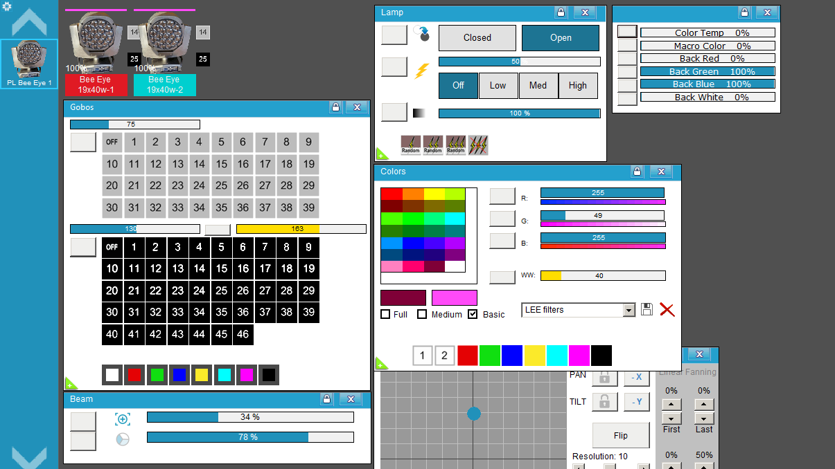 Librería para Freestyler DMX del Cabezal Móvil "Bee Eye 19x40w" de Pro Light Uk ( 22-23-25-36-78-92-97-99-101CH ).