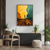 This artwork would pair well with other abstract or surreal pieces, especially those that explore themes of nature, existence, and human connection to the environment. It would complement spaces that evoke thought and introspection, such as meditation rooms, personal study areas, or modern living spaces.