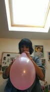 2 pink balloons get blown until it pops by lovely Tamira. POP!