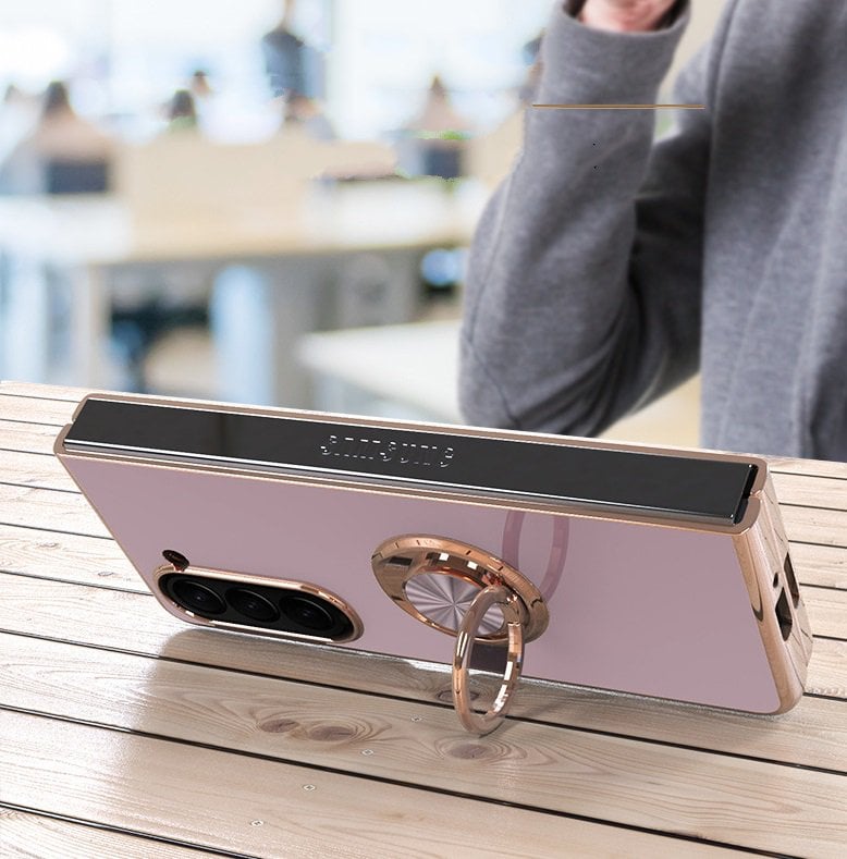 New 2023 Compatible for Samsung Galaxy Z Fold 5 Fold 4 Phone Case Ring Bracket Soft TPU Magnetic Suction Car Plating Shock-Proof Protector Case Cover for Samsung Galaxy Z Fold 5 Z Fold 4 Cover