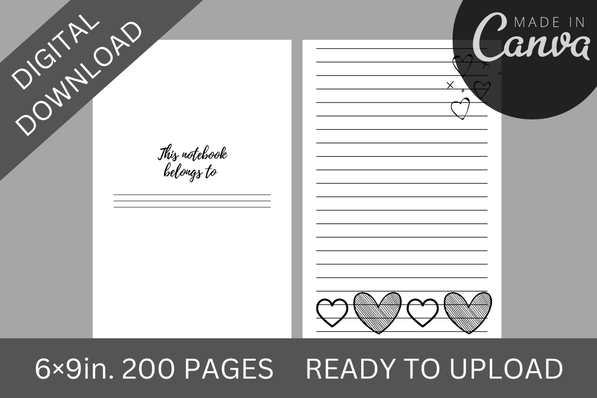 LOVE THEMED KDP LINED PAPER, LOW CONTENT BOOK FOR KDP READY UPLOAD, HEART THEMED KDP JOURNAL PAPER, JOURNAL NOTEBOOK MOCKUPS, KDP CANVA NOTE INTERIOR
