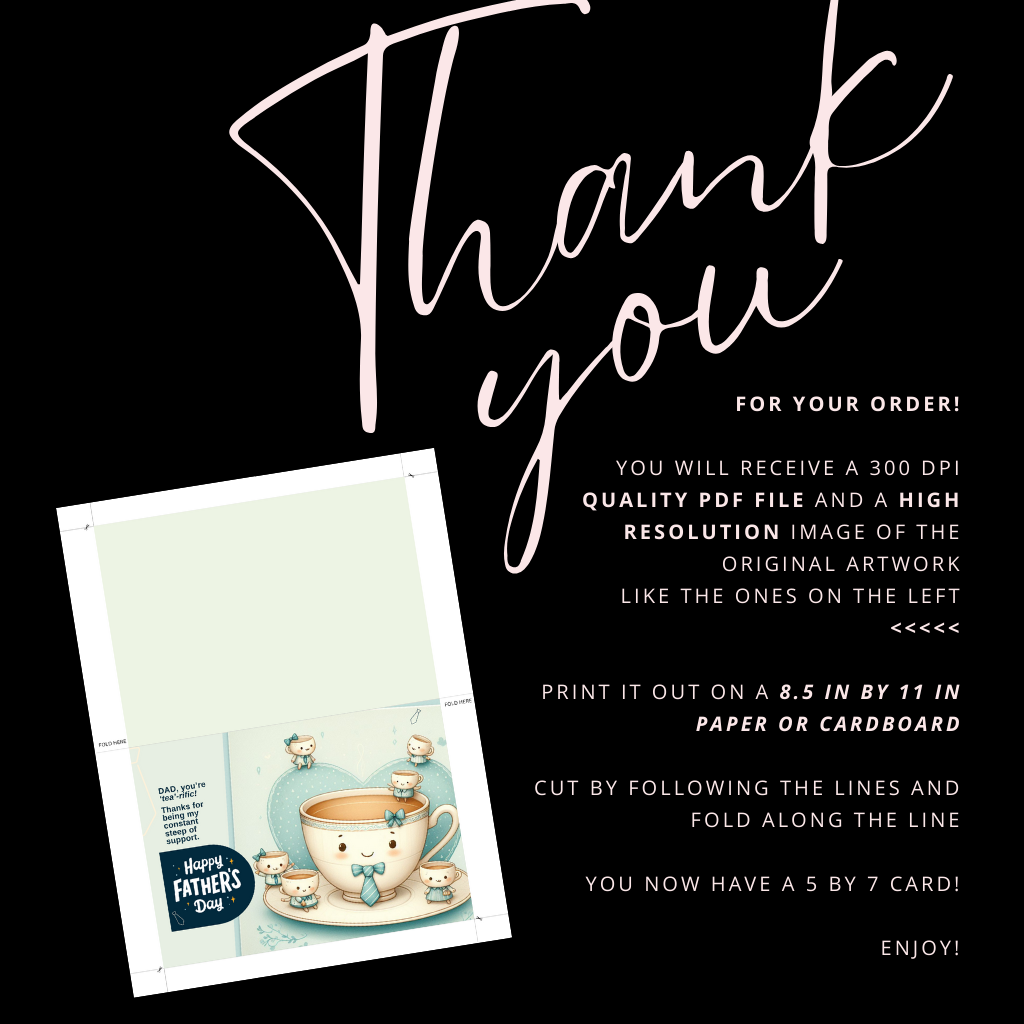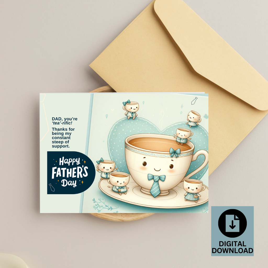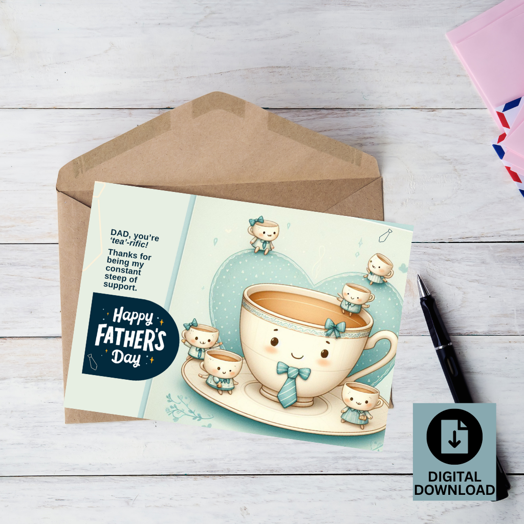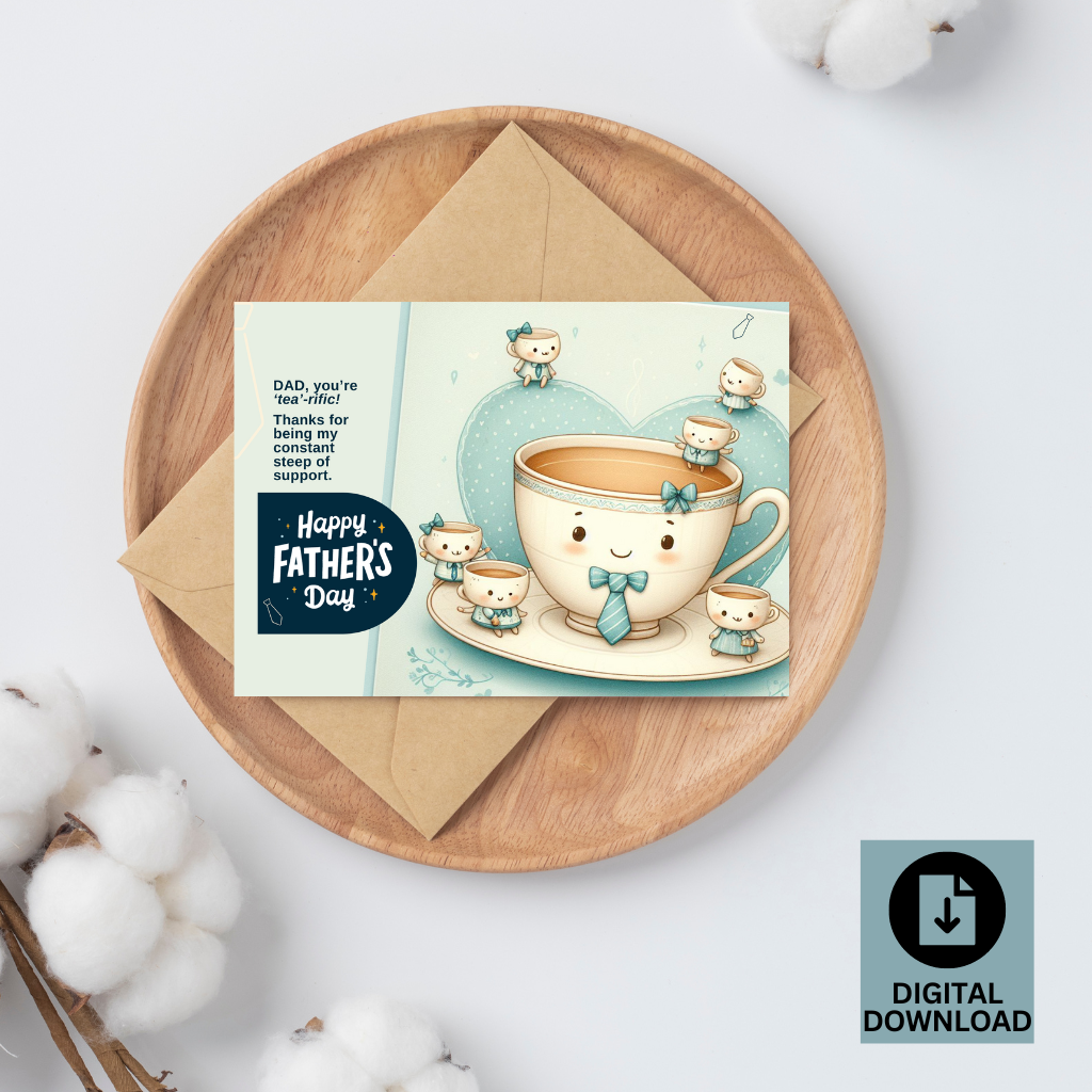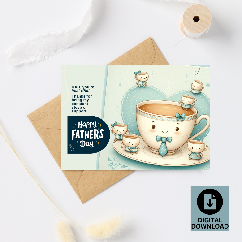 DAD, you’re ‘tea’-rific! Father's Day Card | Adorable Tea-pot Characters | Heartwarming Pun | Digital Download & Printable | Design 1