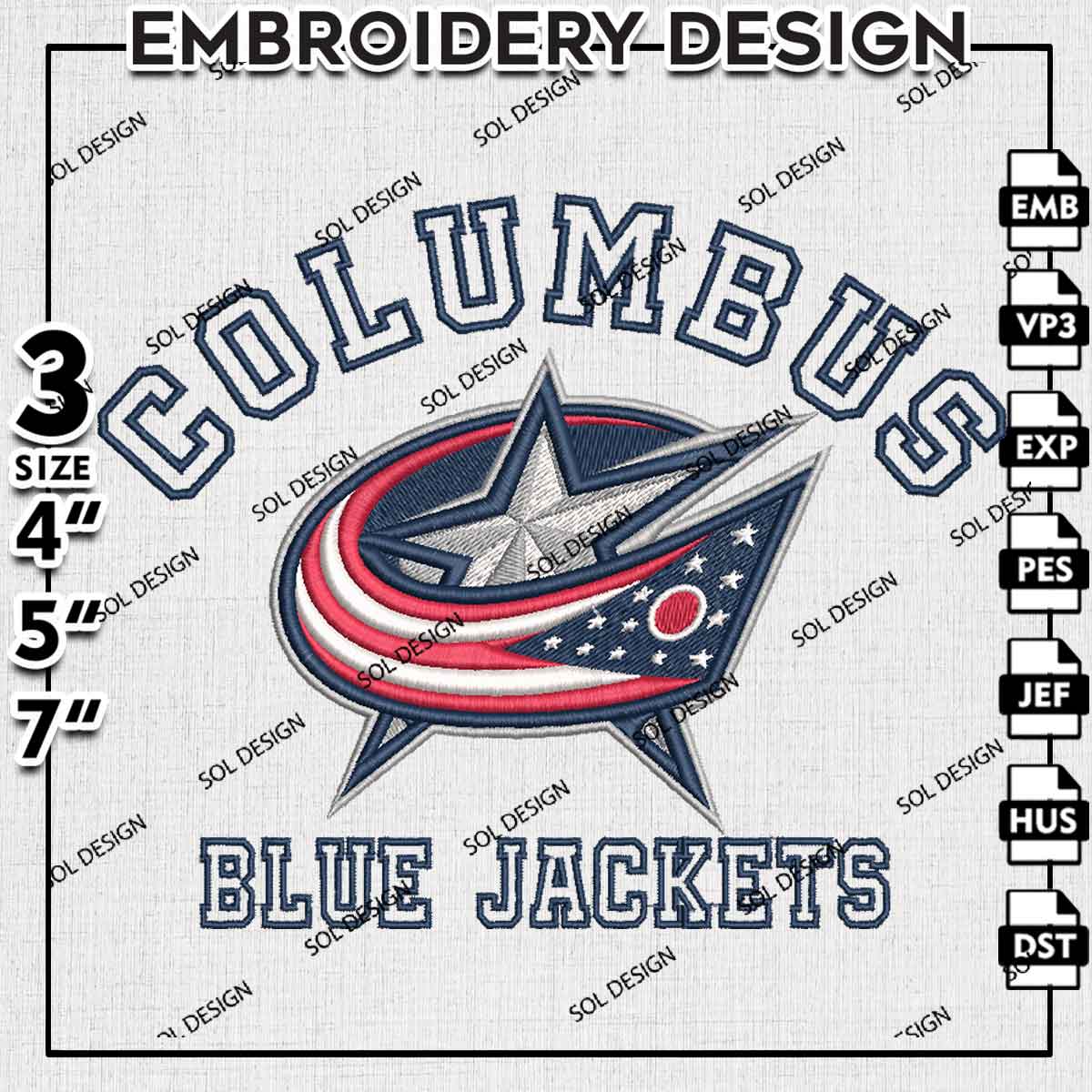 NHL Columbus Blue Jackets Team Word Mascot Logo Embroidery Designs, Columbus Blue Jackets Hockey Team Embroidery Files, NHL Blue Jackets Team Logo Embroidery, NHL Hockey Team Machine Embroidery Design, 3 sizes, Digital Download